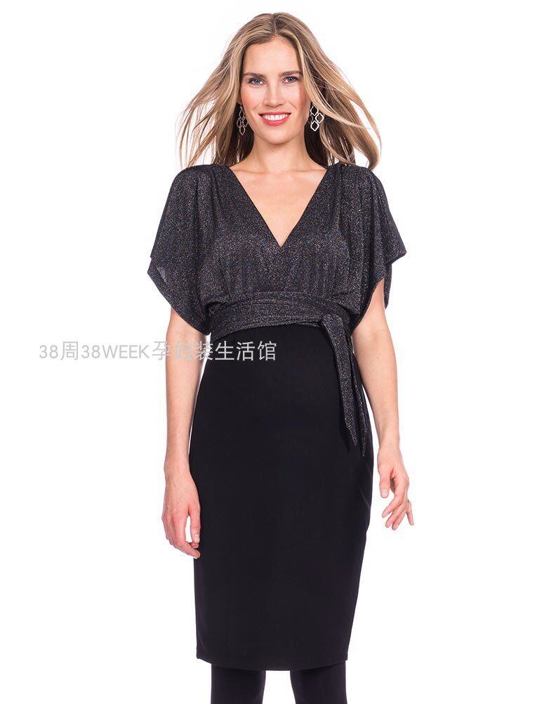 Осеннее вечернее платье для беременных, блестящая сексуальная эластичная юбка для кормящих грудью, V-образный вырез, европейский стиль