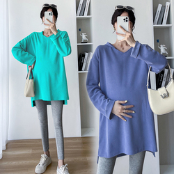 Осенний демисезонный лонгслив для беременных, модное термобелье, толстовка с капюшоном, свитер, платье