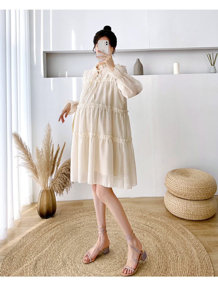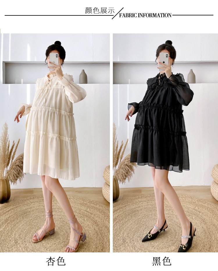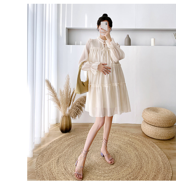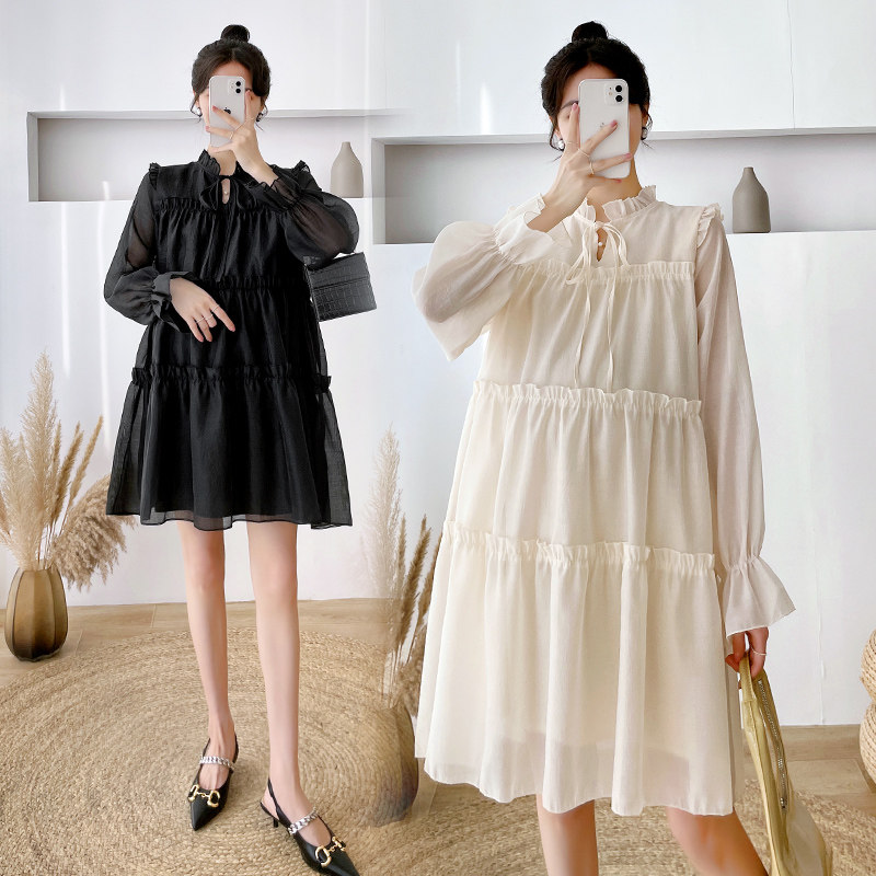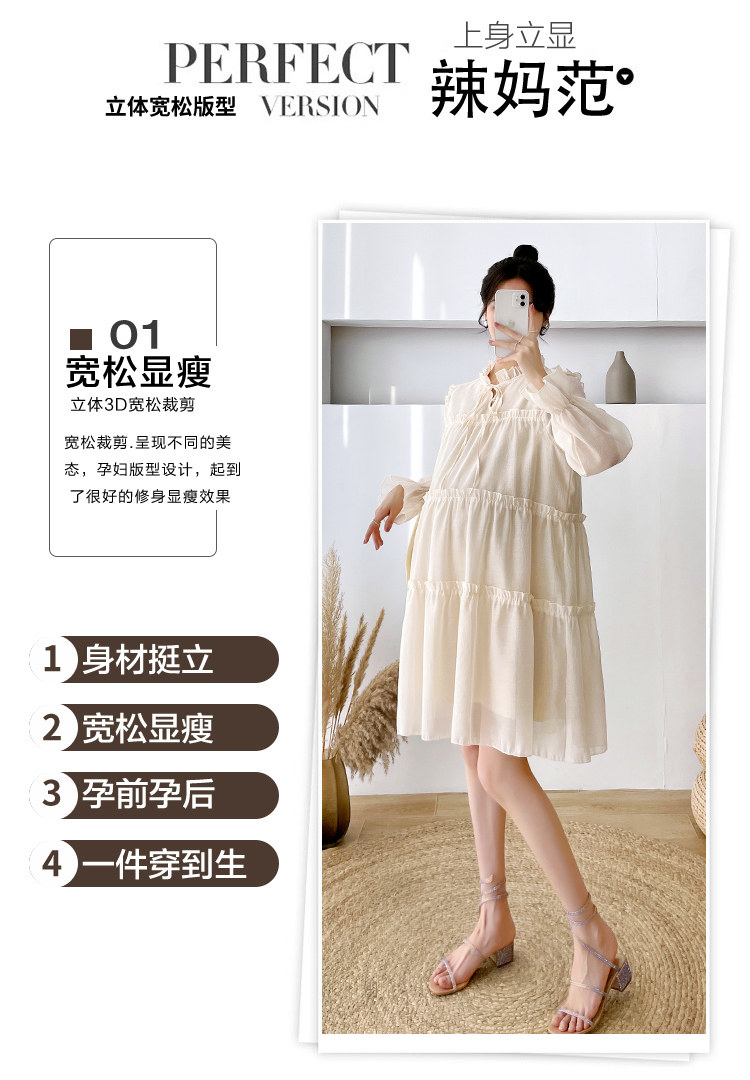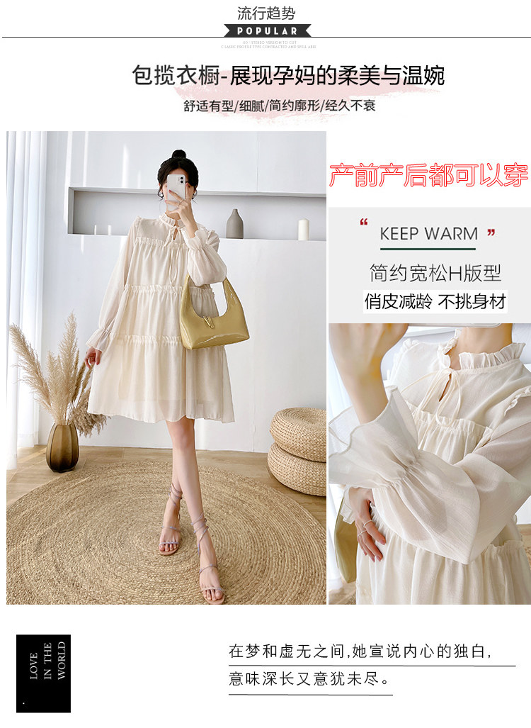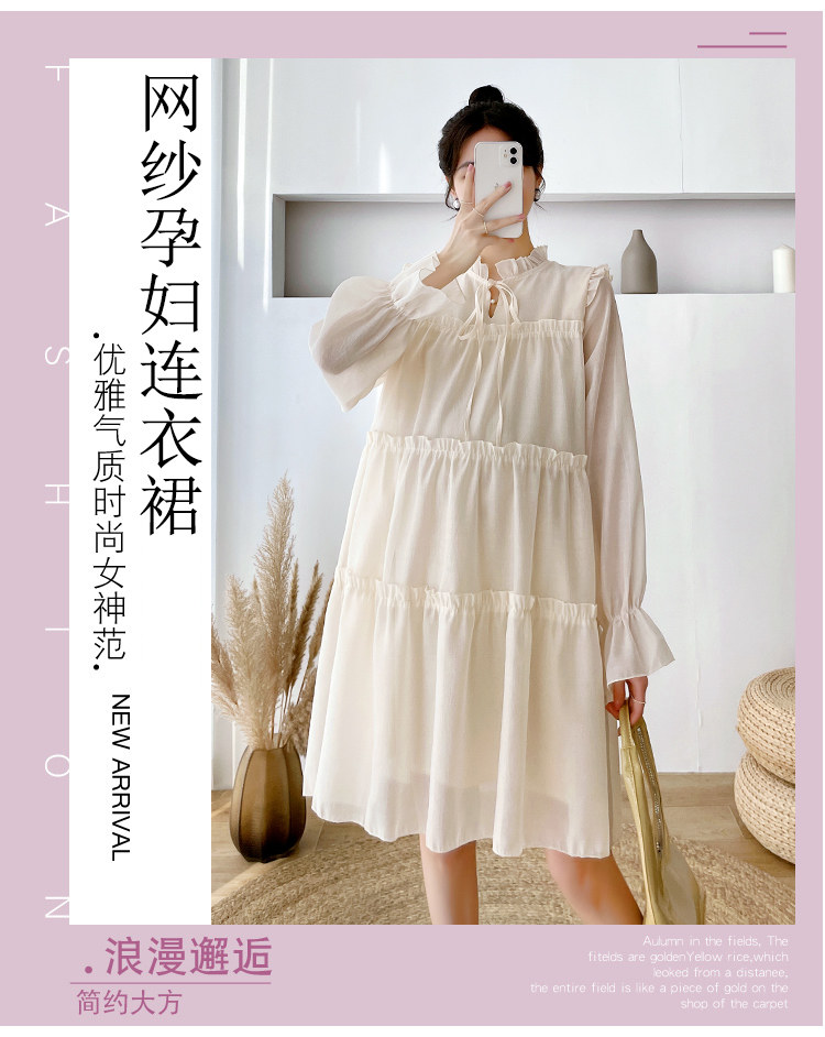 Осеннее модное длинное демисезонное платье для беременных, свободный крой, длина миди, популярно в интернете