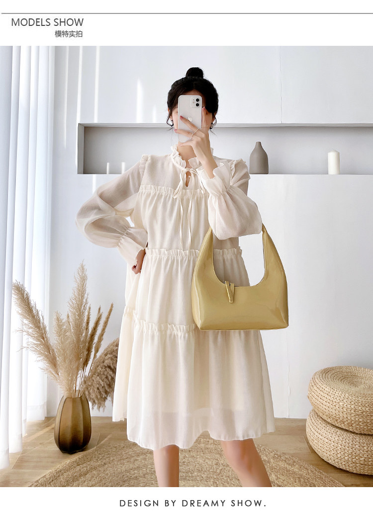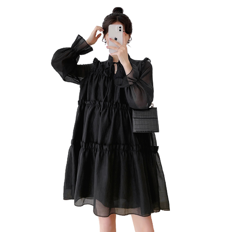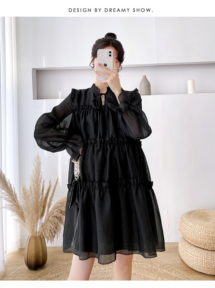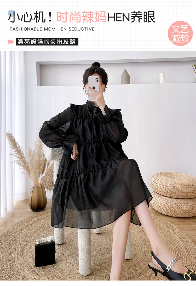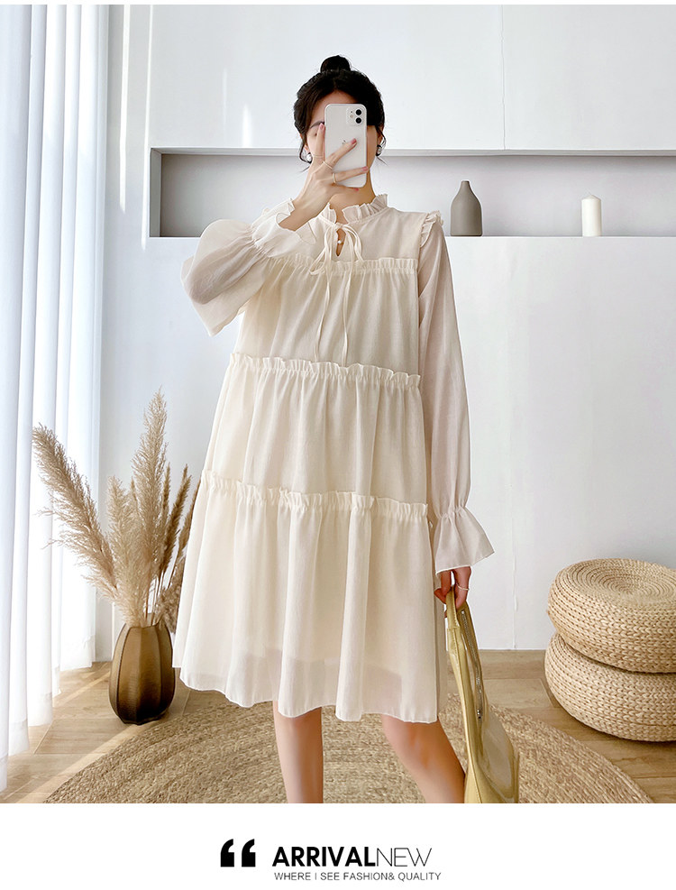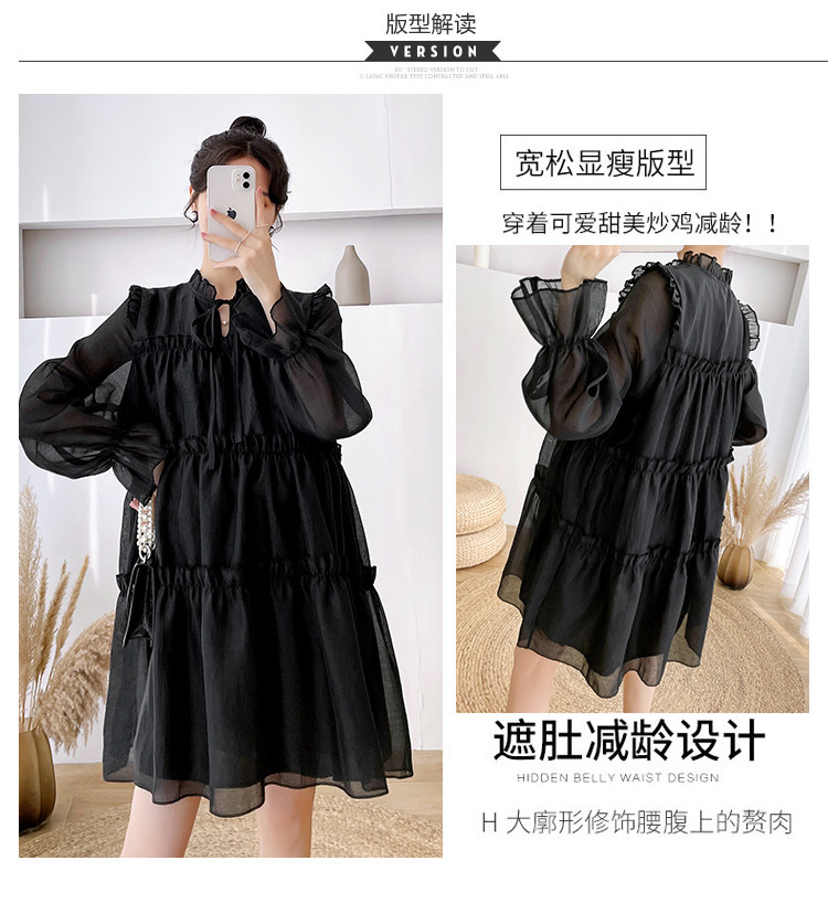 Осеннее модное длинное демисезонное платье для беременных, свободный крой, длина миди, популярно в интернете