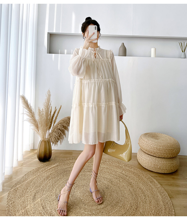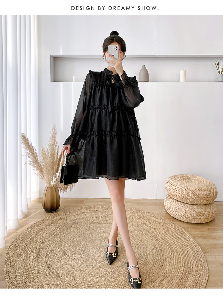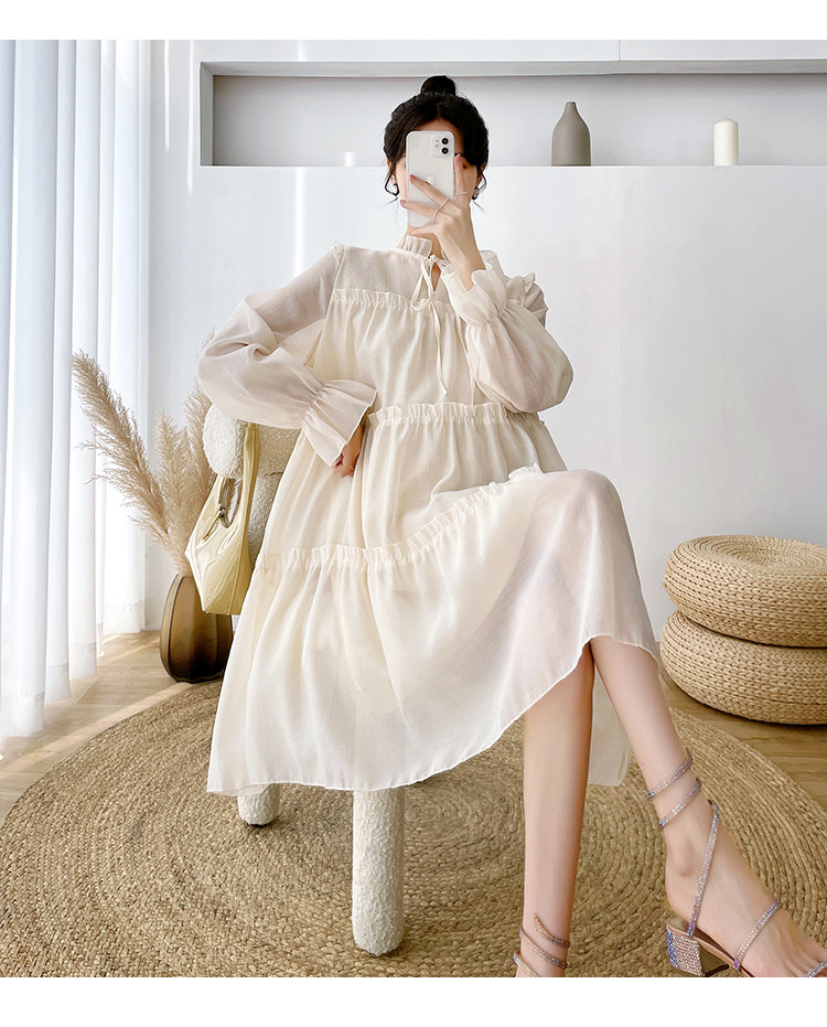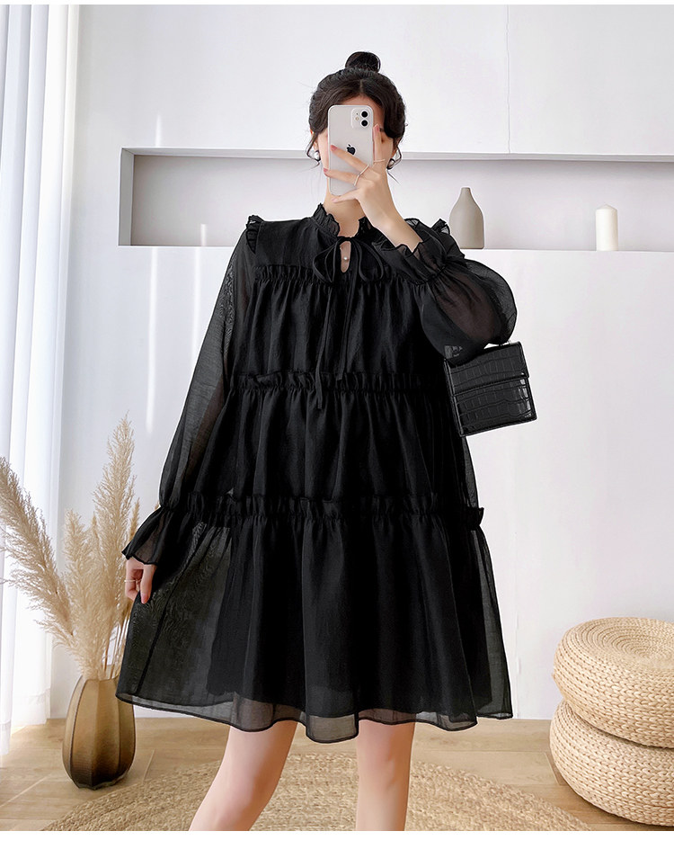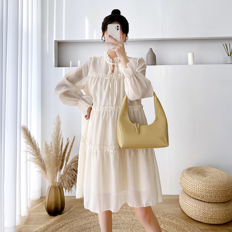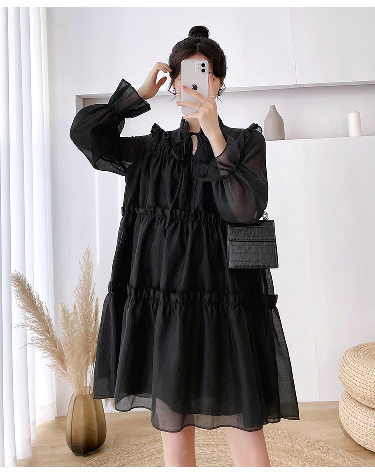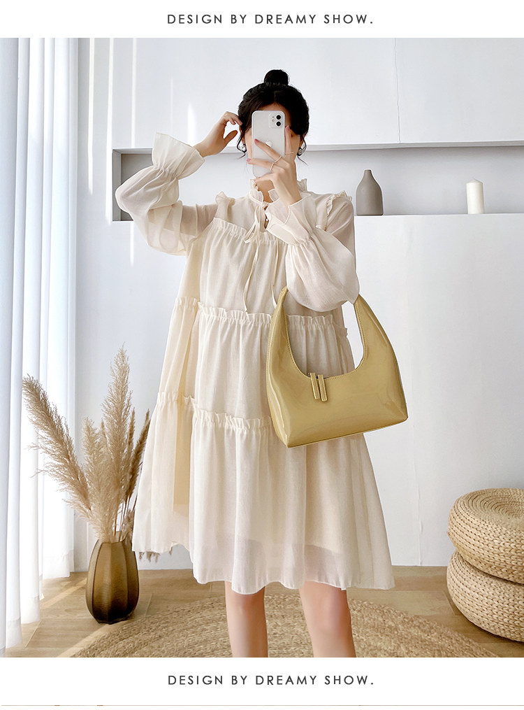 Осеннее модное длинное демисезонное платье для беременных, свободный крой, длина миди, популярно в интернете