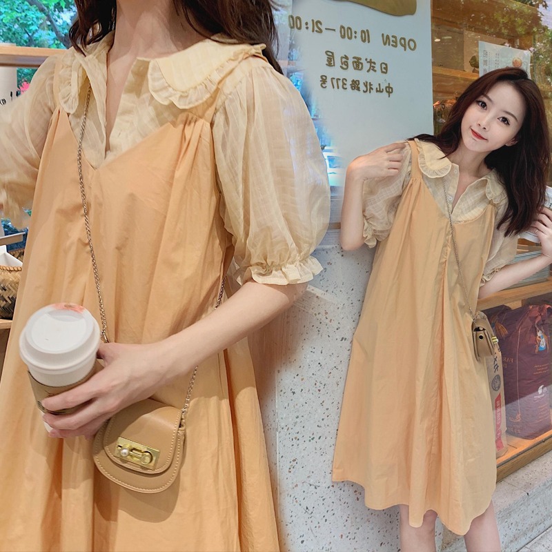 Летняя одежда для беременных, кукла, летняя юбка, длинное платье, комплект, новая коллекция, в корейском стиле, кукольный воротник, средней длины