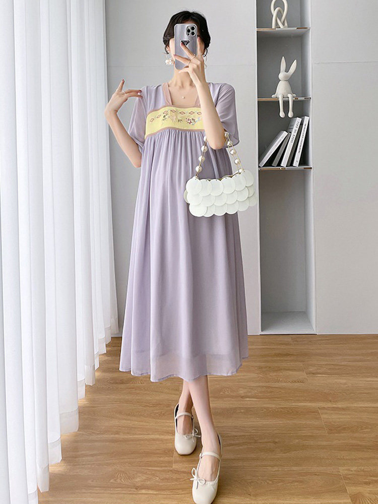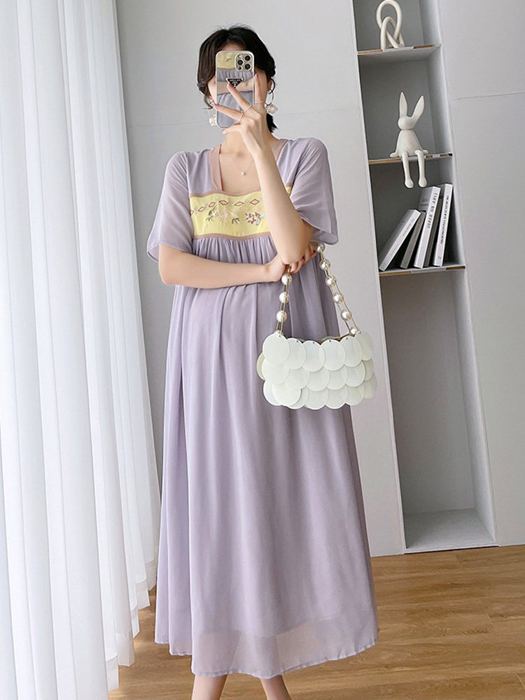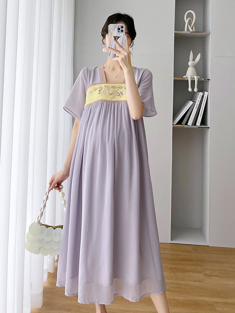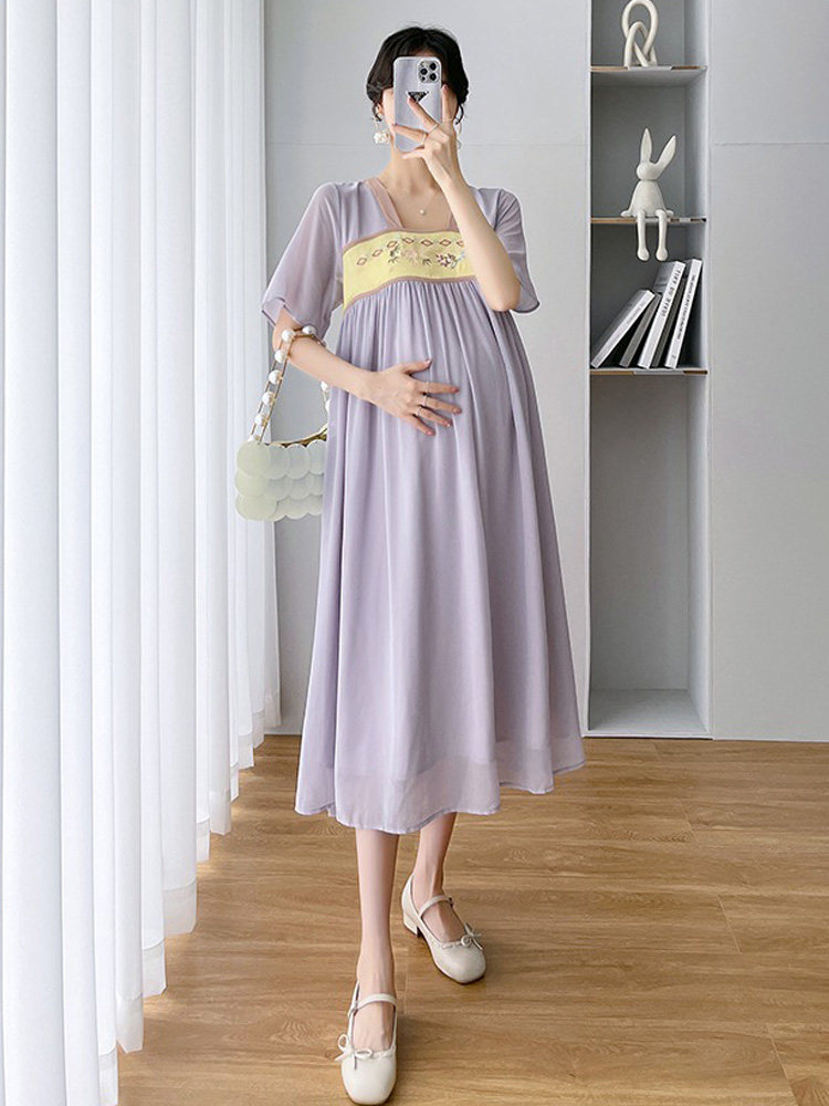 Летняя одежда для беременных, летний модный комплект, шифоновое ханьфу, платье, юбка, квадратный вырез, свободный крой