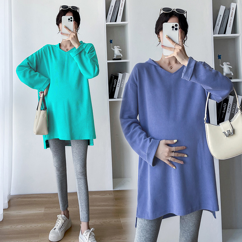 Весенний лонгслив для беременных, демисезонное термобелье, модные базовые приятные телу джинсы с начесом, толстовка с капюшоном, большой размер