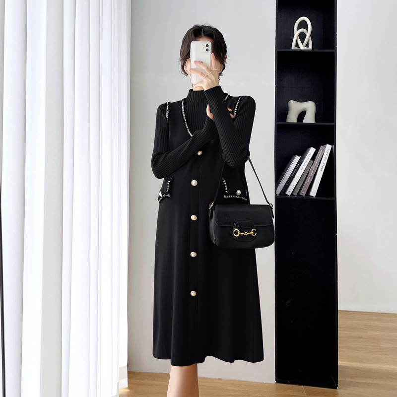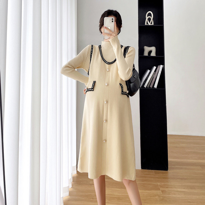 Термобелье, комплект, модное свободное платье, трикотажная длинная юбка, жилет, коллекция 2023