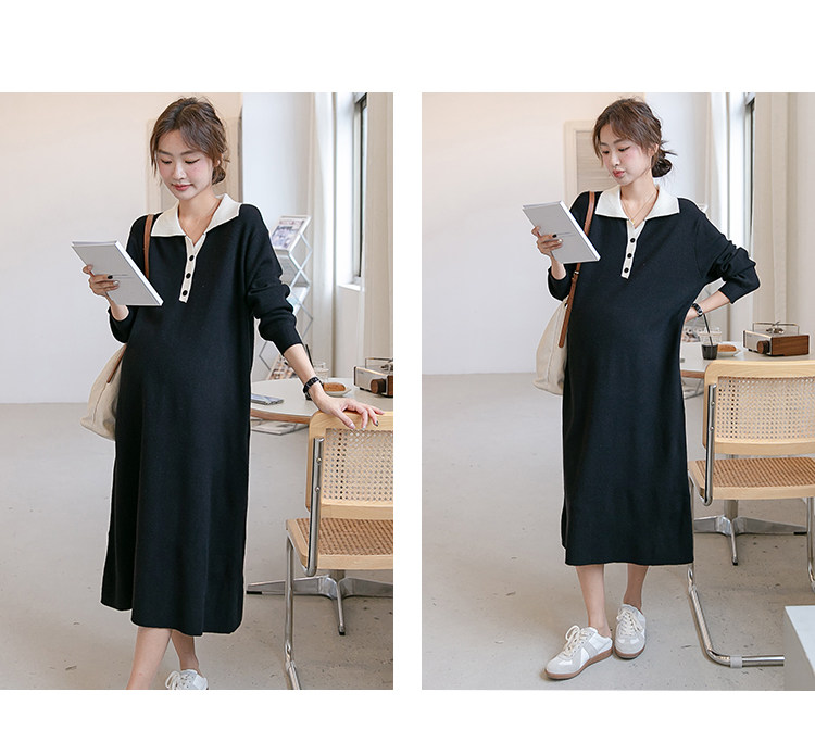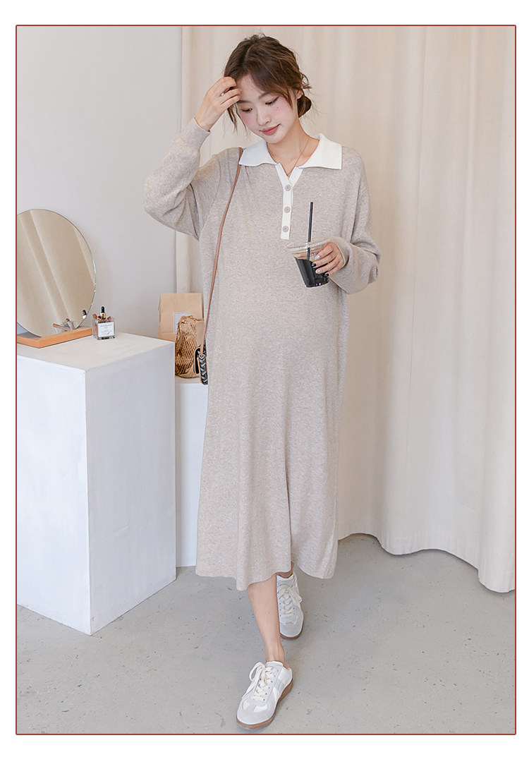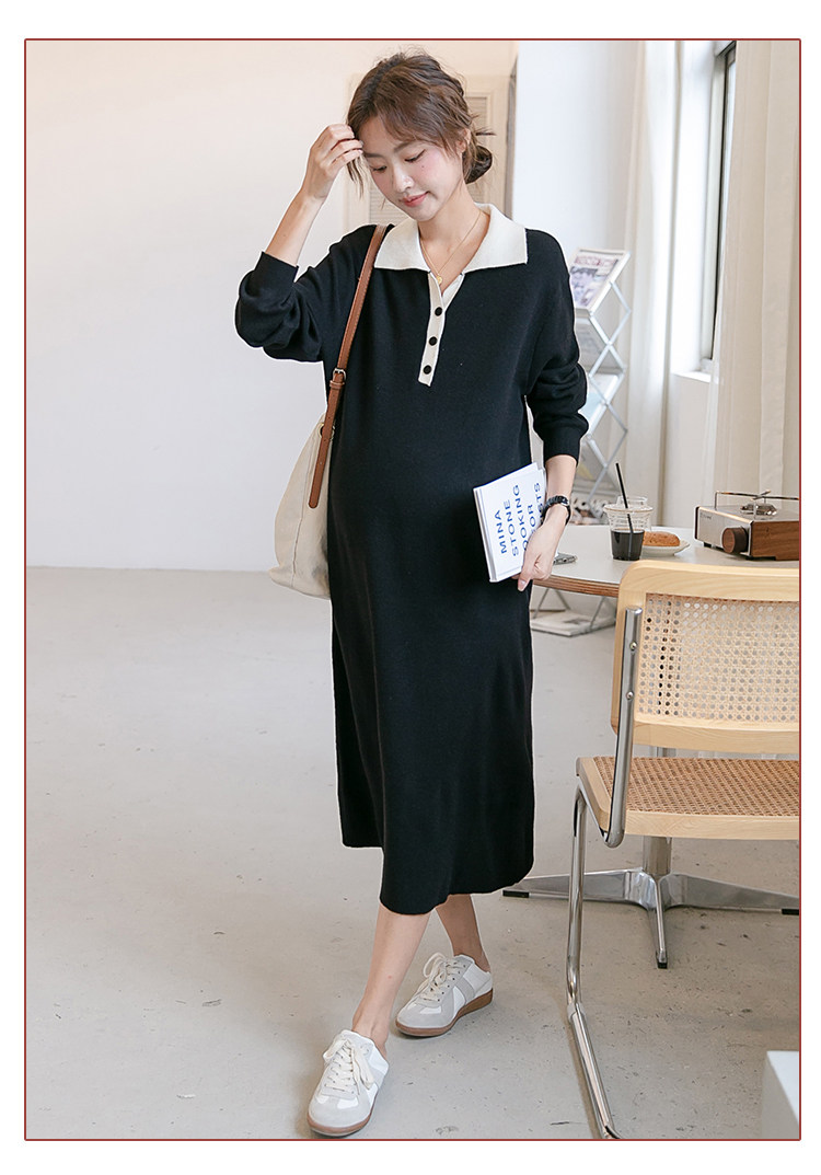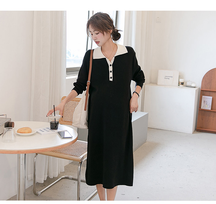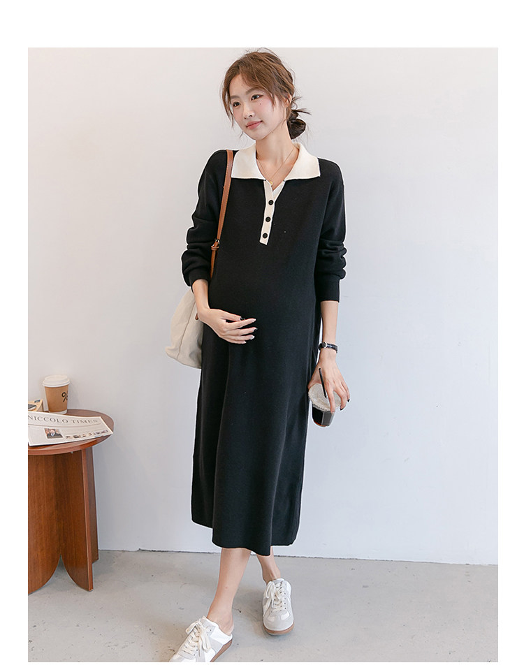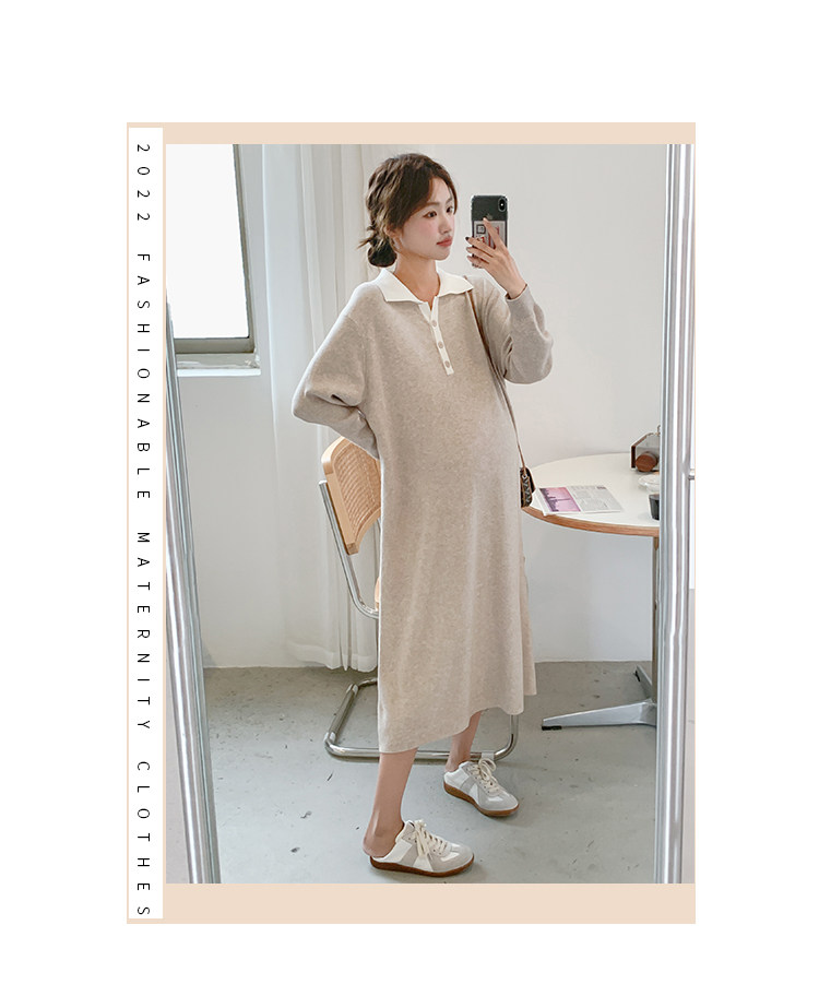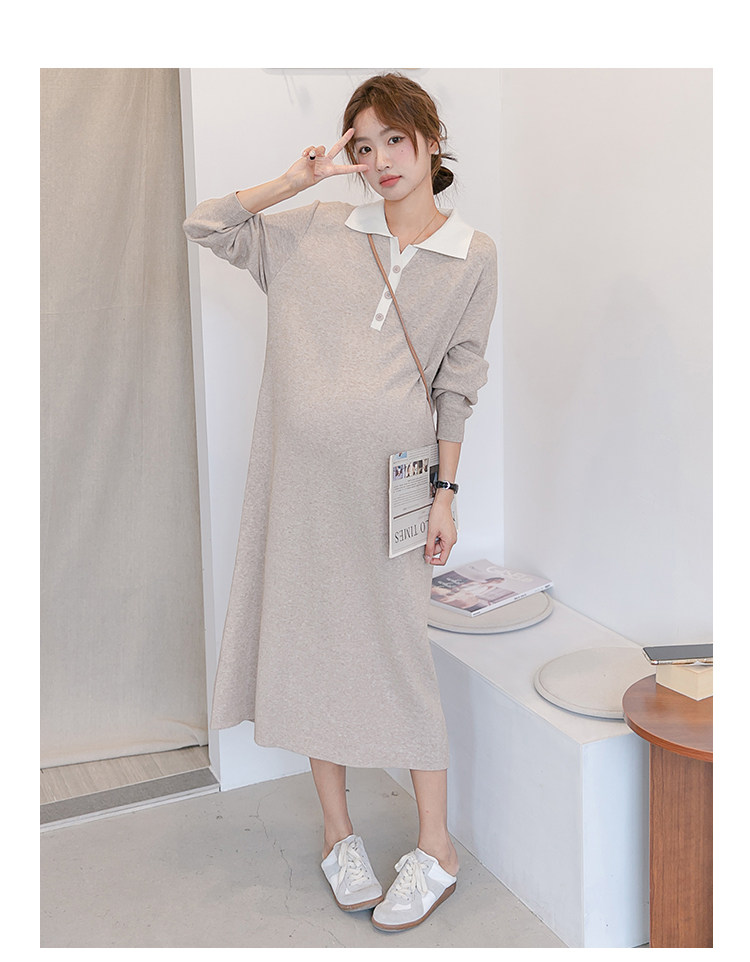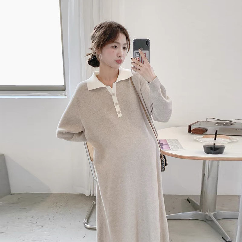 Весеннее модное длинное трикотажное шерстяное платье для беременных, демисезонная юбка, в западном стиле, средней длины