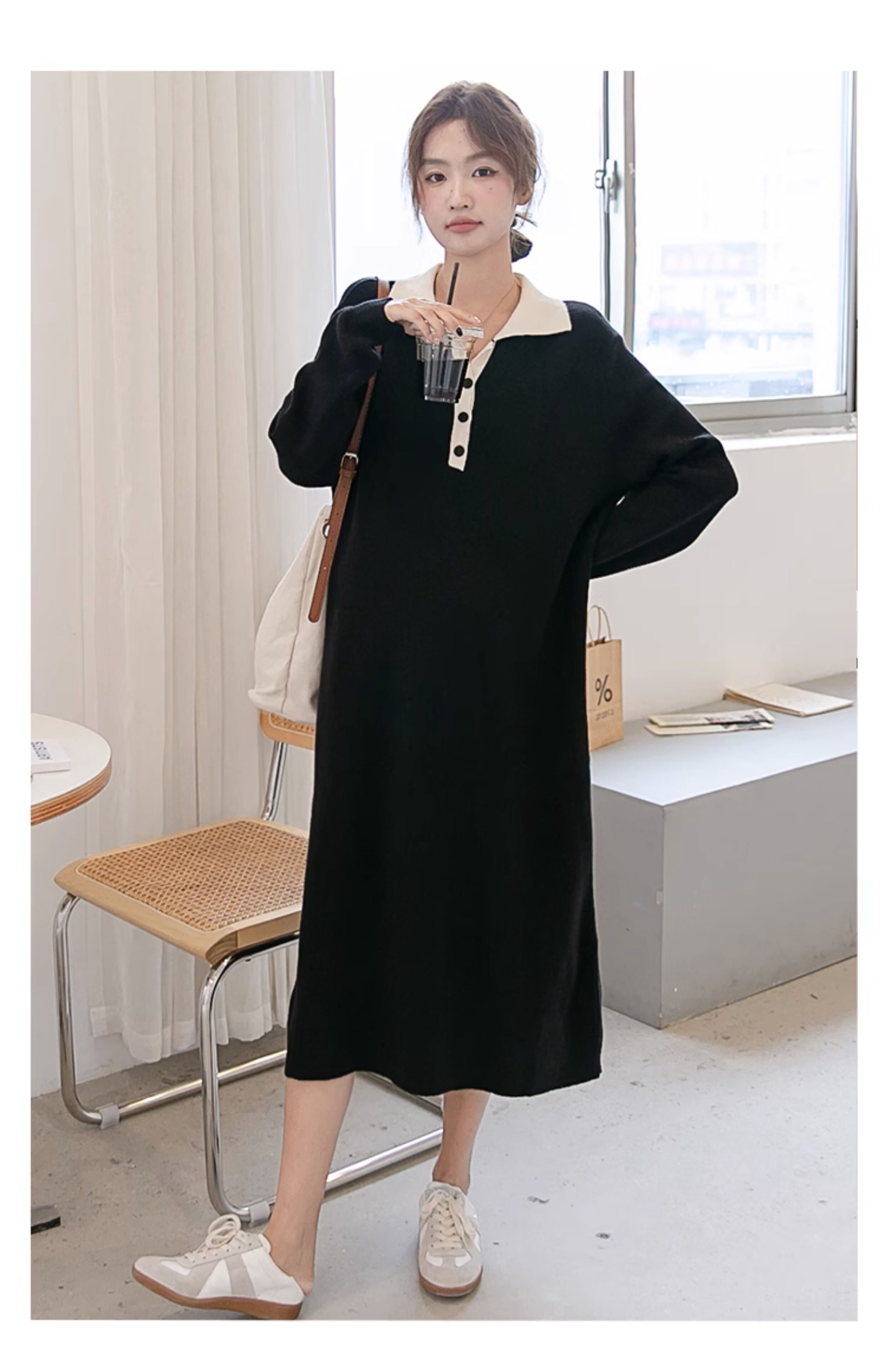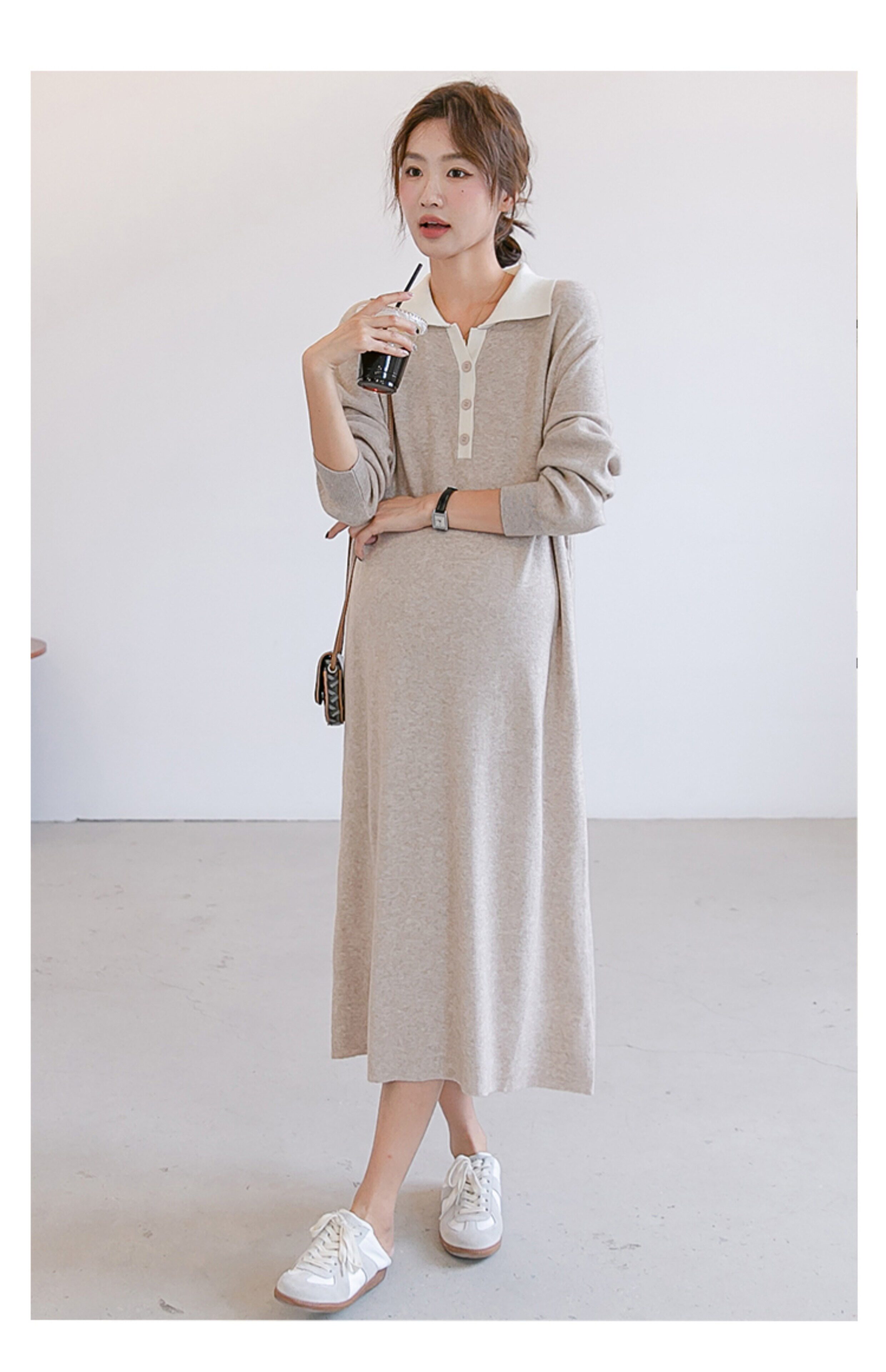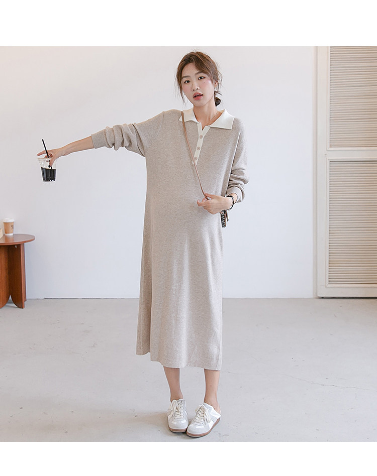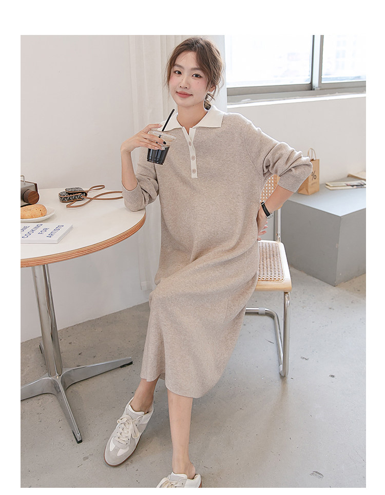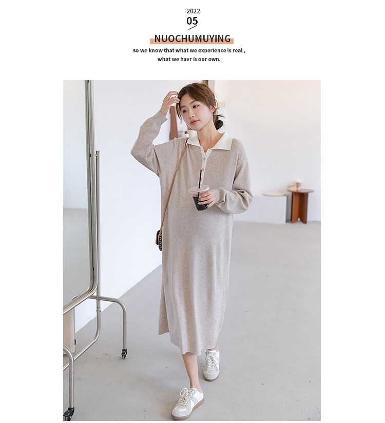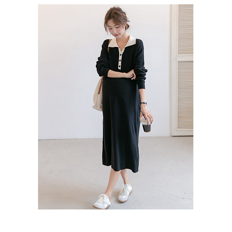 Весеннее модное длинное трикотажное шерстяное платье для беременных, демисезонная юбка, в западном стиле, средней длины