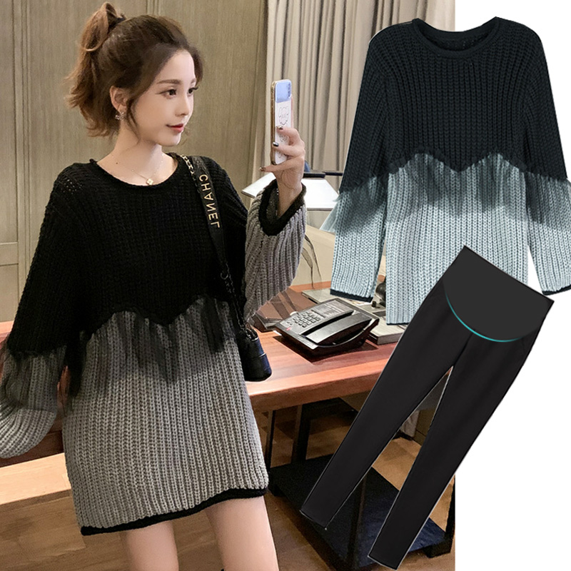 Осеннее термобелье, модный длинный свитер для беременных, платье, комплект, 2020, городской стиль, свободный крой, средней длины