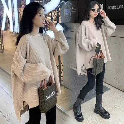 Демисезонный трикотажный шерстяной приятный телу свитер для беременных, коллекция 2023, круглый воротник, увеличенная толщина