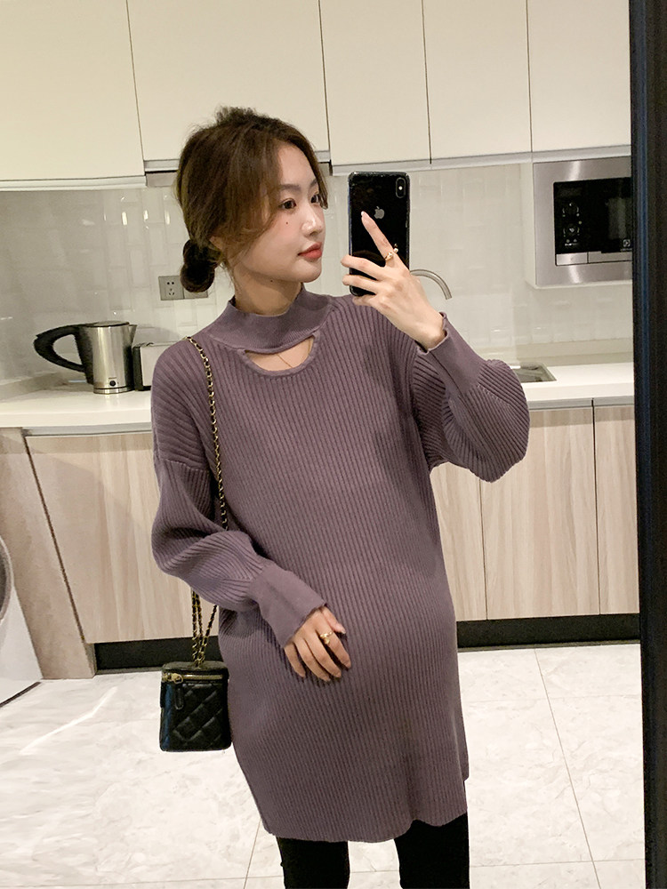 Изысканный красный длинный демисезонный свитер для беременных, модная трикотажная юбка, средней длины, в корейском стиле