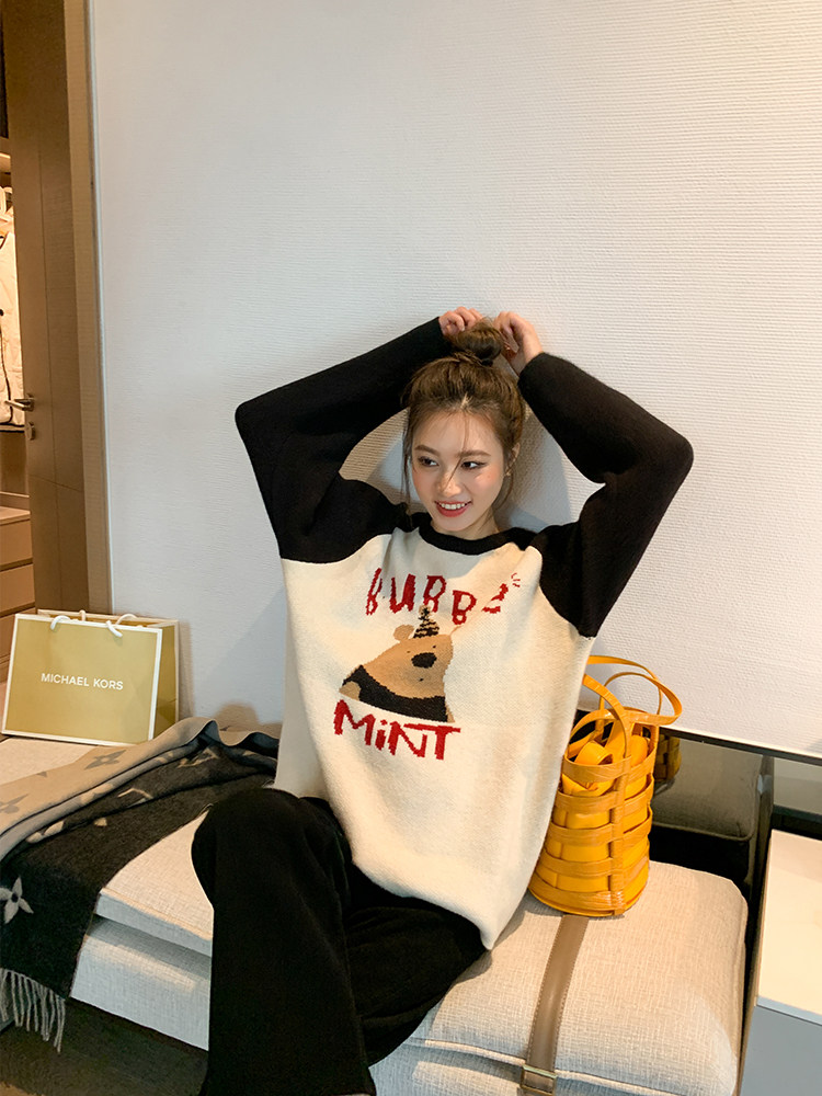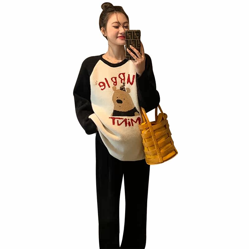 Мультяшный трикотажный свитер для беременных для отдыха