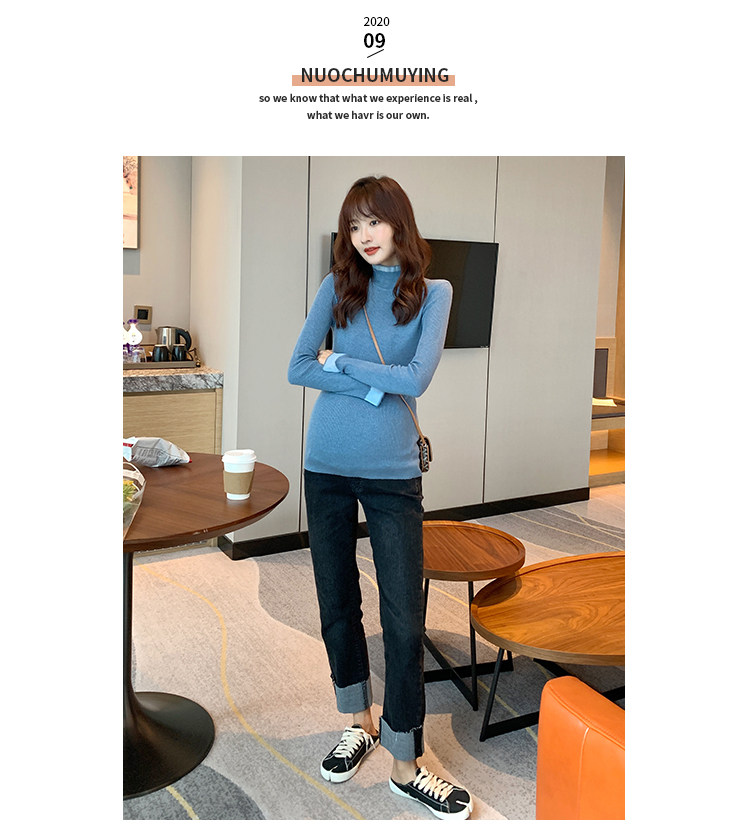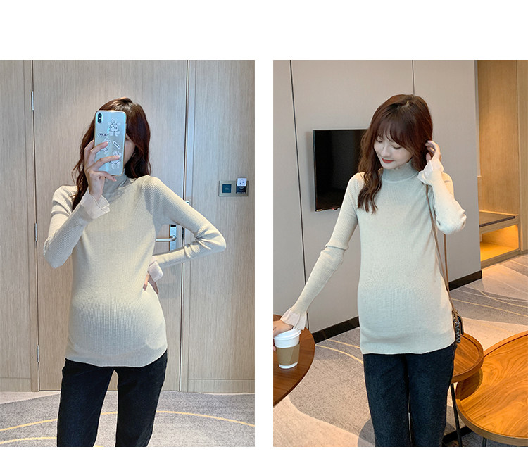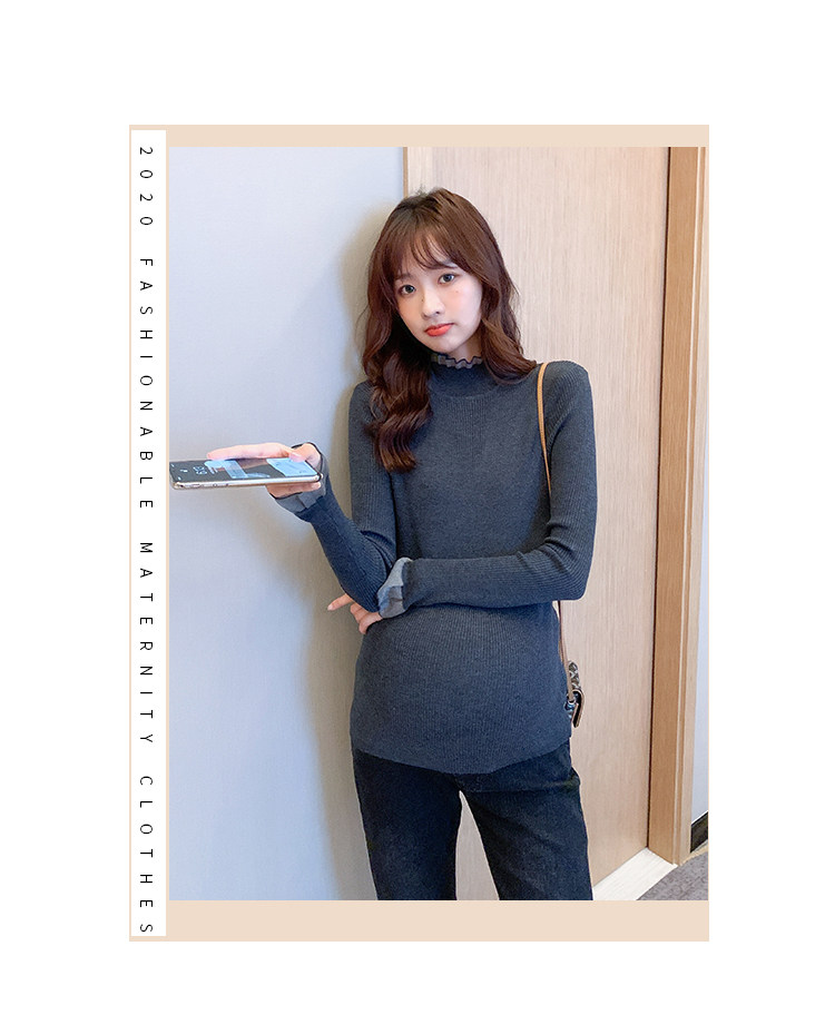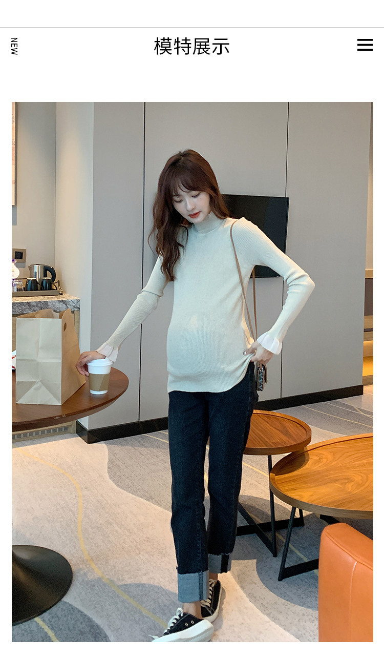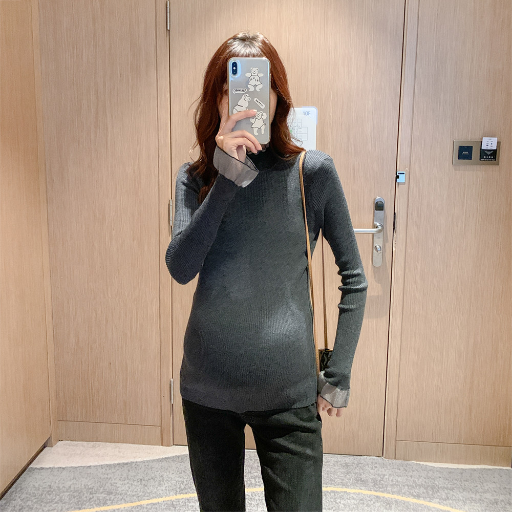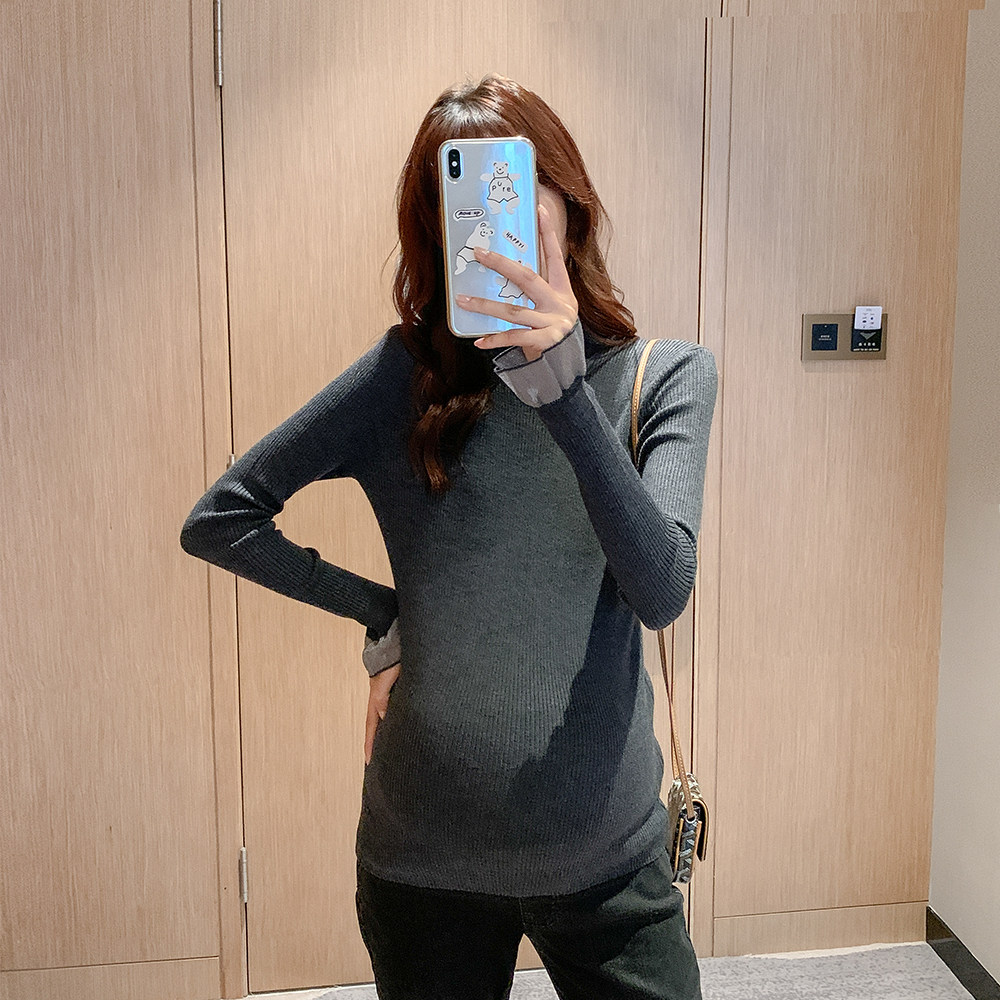 Базовая модная осенняя длинная футболка для беременных, осенний приталенный трикотажный свитер, в западном стиле, средней длины