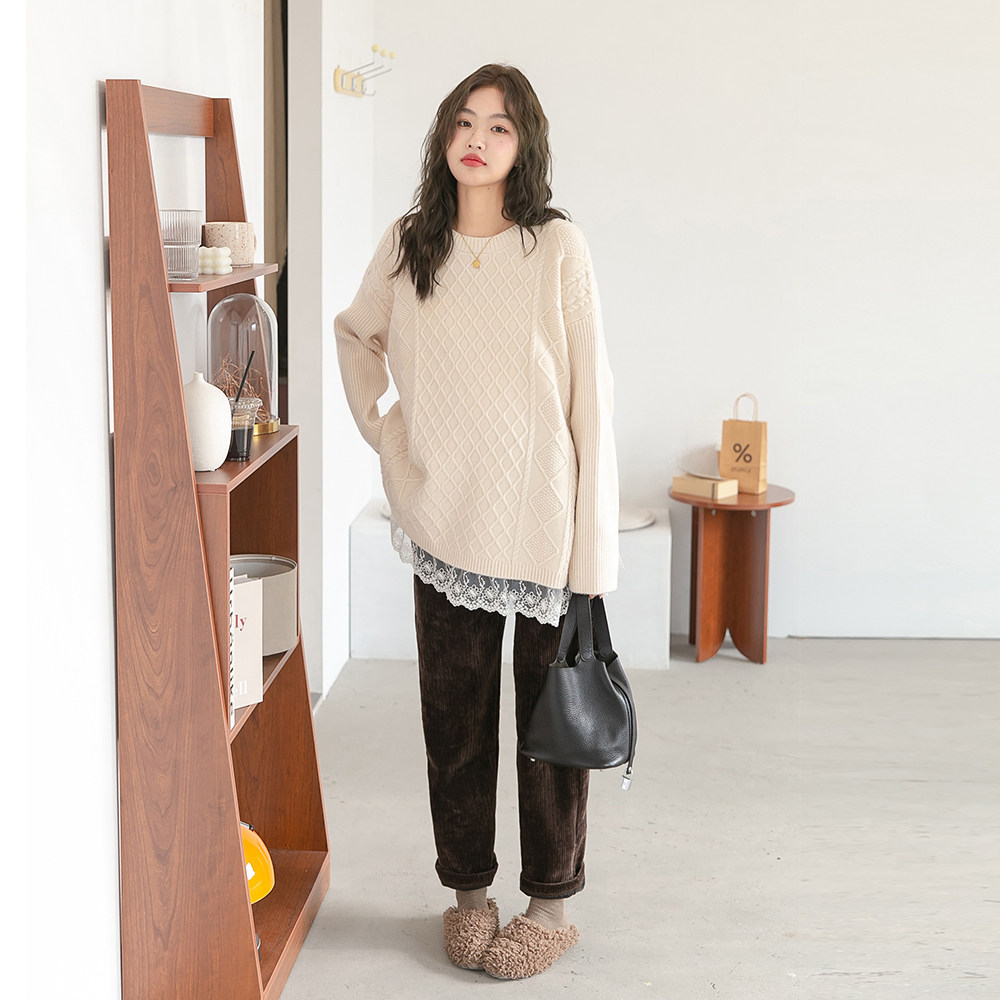 Милый осенний демисезонный трикотажный комплект для беременных с круглым воротником, свитер