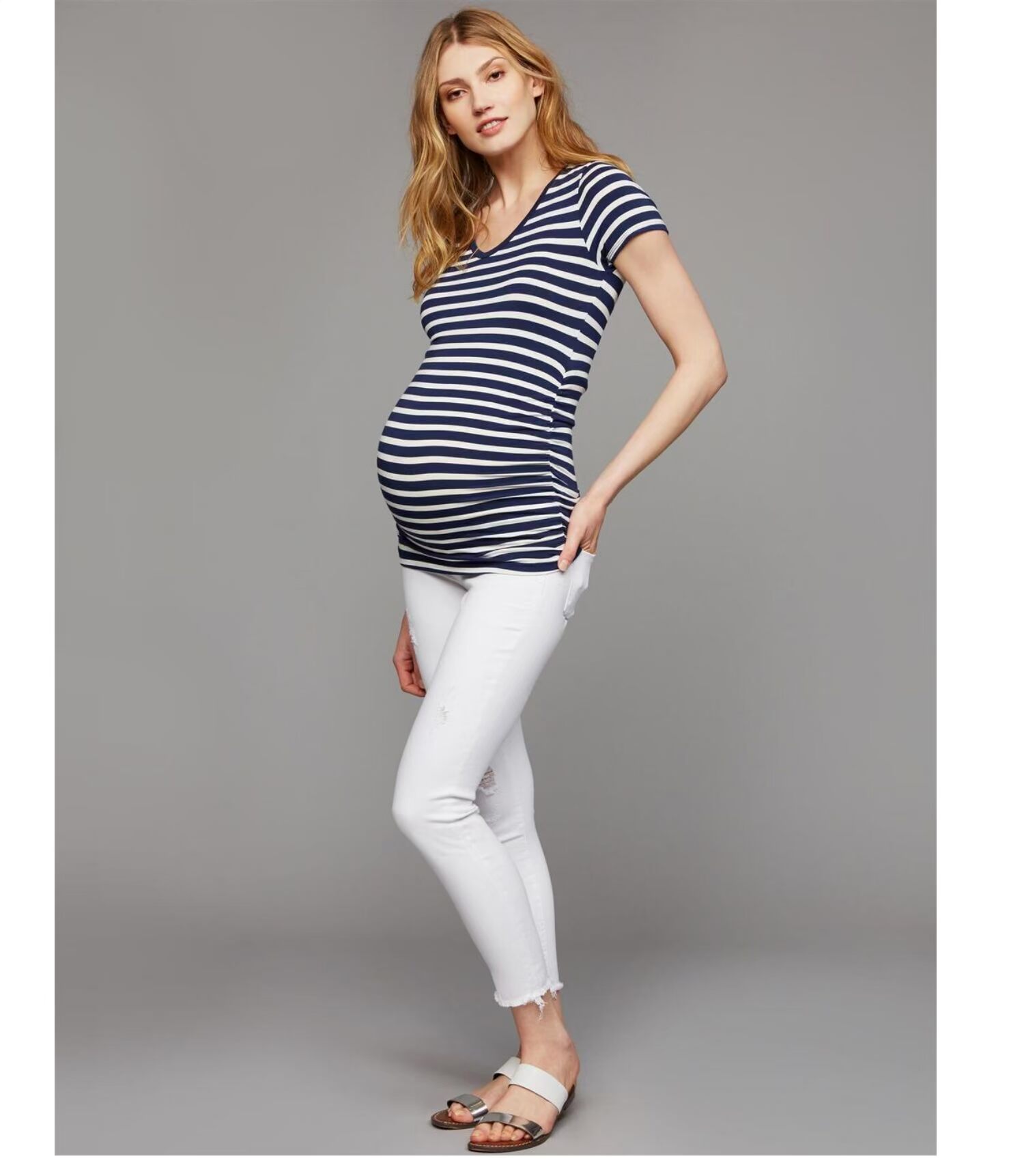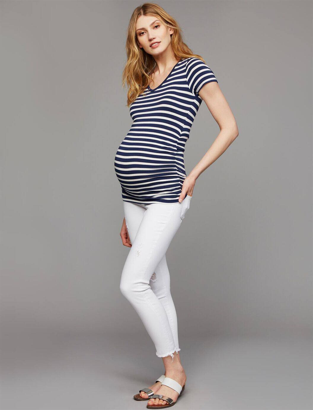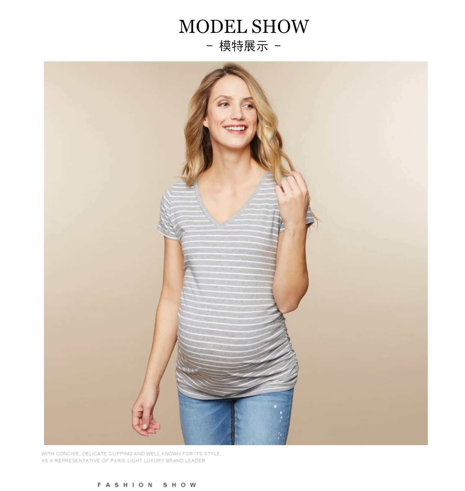 Летняя хлопковая длинная модная приятная телу футболка для беременных, V-образный вырез, короткий рукав, средней длины, большой размер