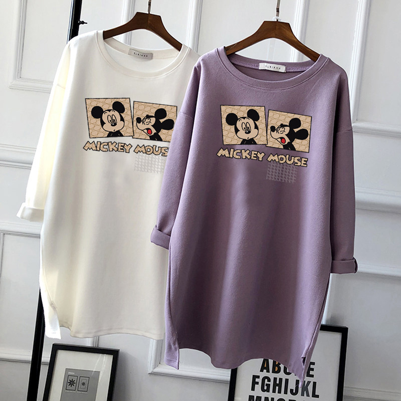 Осеннее термобелье, лонгслив, хлопковая длинная базовая приятная телу демисезонная футболка для беременных, в корейском стиле, оверсайз, средней длины
