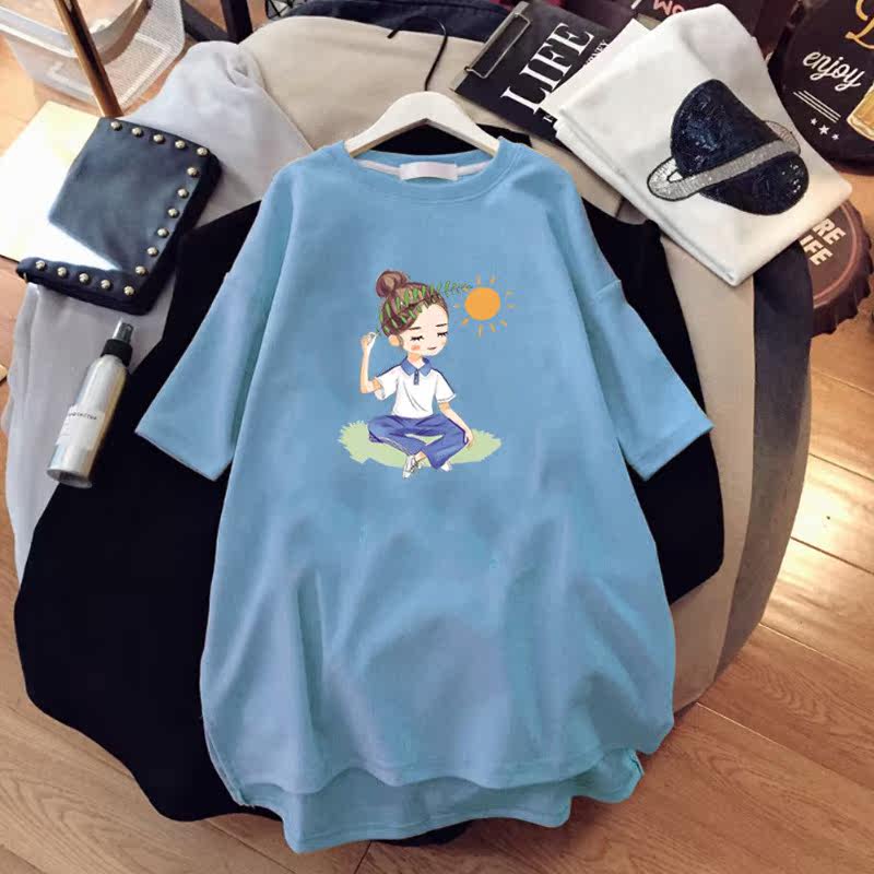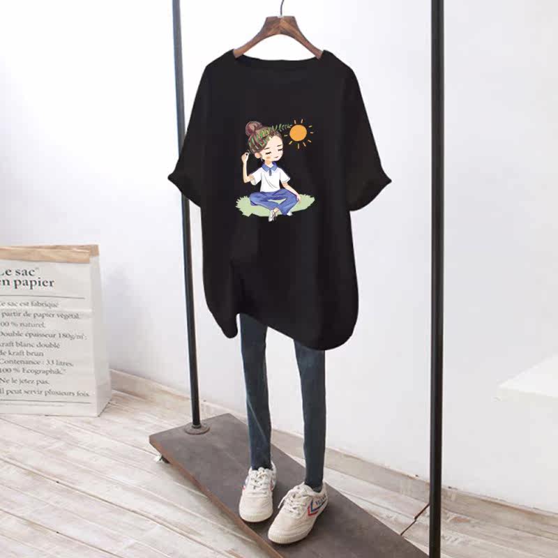 Футболка с коротким рукавом для беременных, летняя хлопковая длинная летняя одежда, большой размер, оверсайз, средней длины