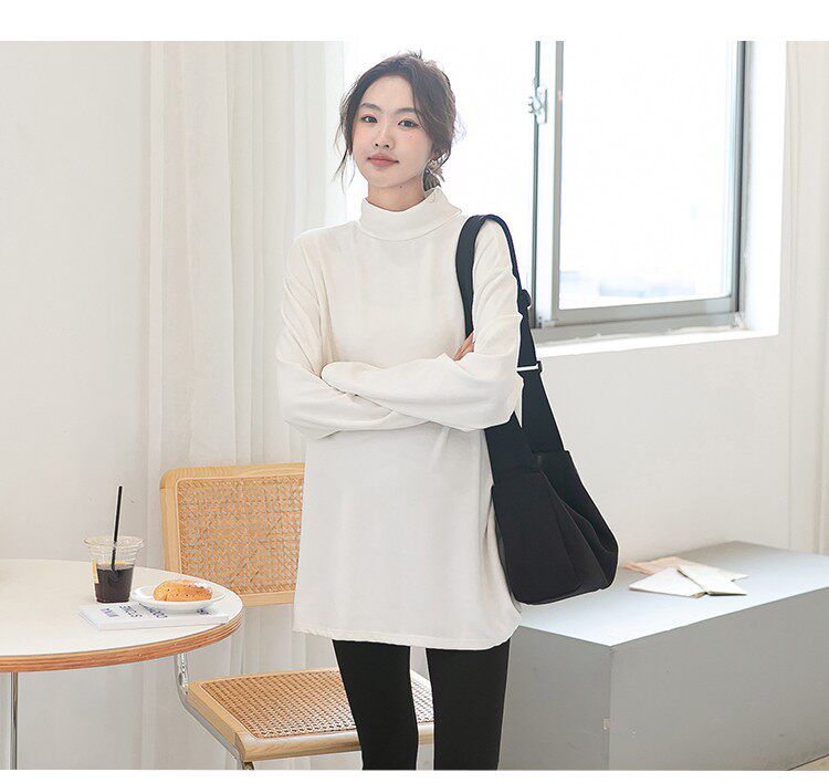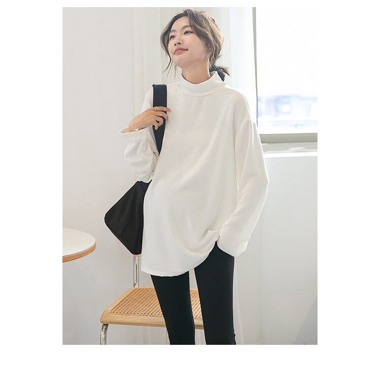 Цветной базовый приятный телу осенний демисезонный лонгслив для беременных, высокий воротник