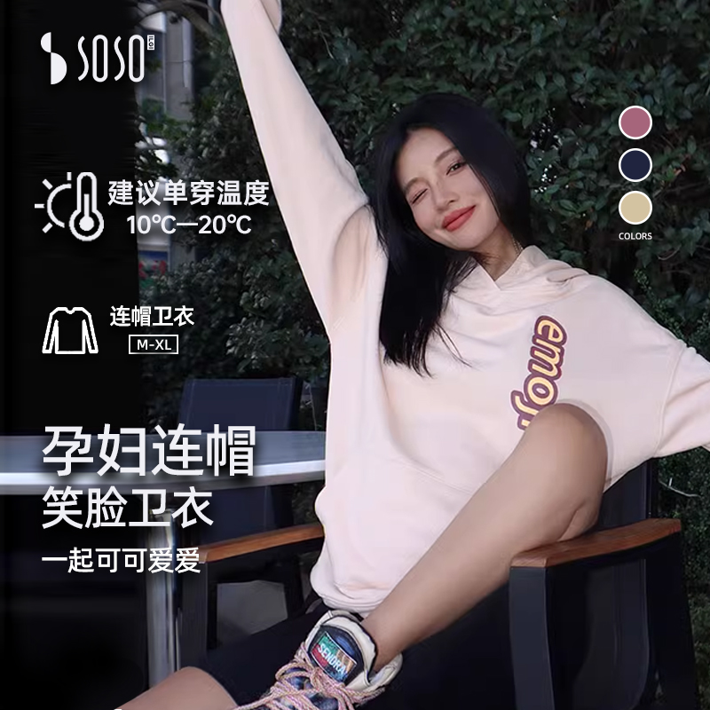 sosoilgi Осенняя толстовка с капюшоном для беременных, осенний лонгслив, подходит для подростков, свободный крой, оверсайз