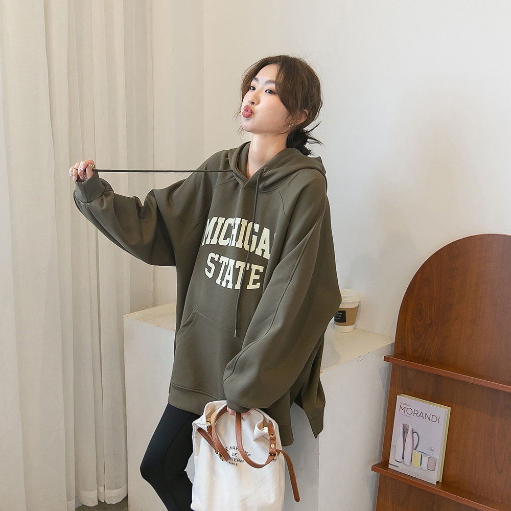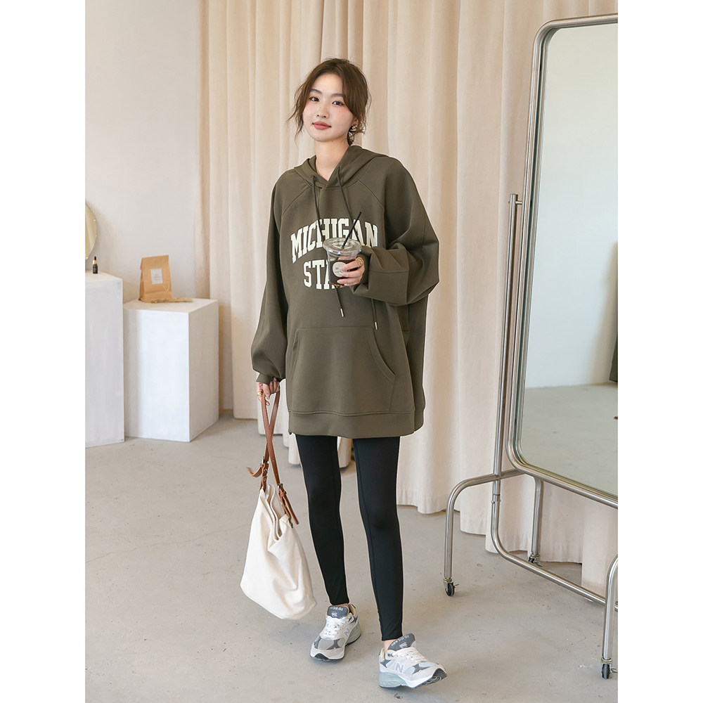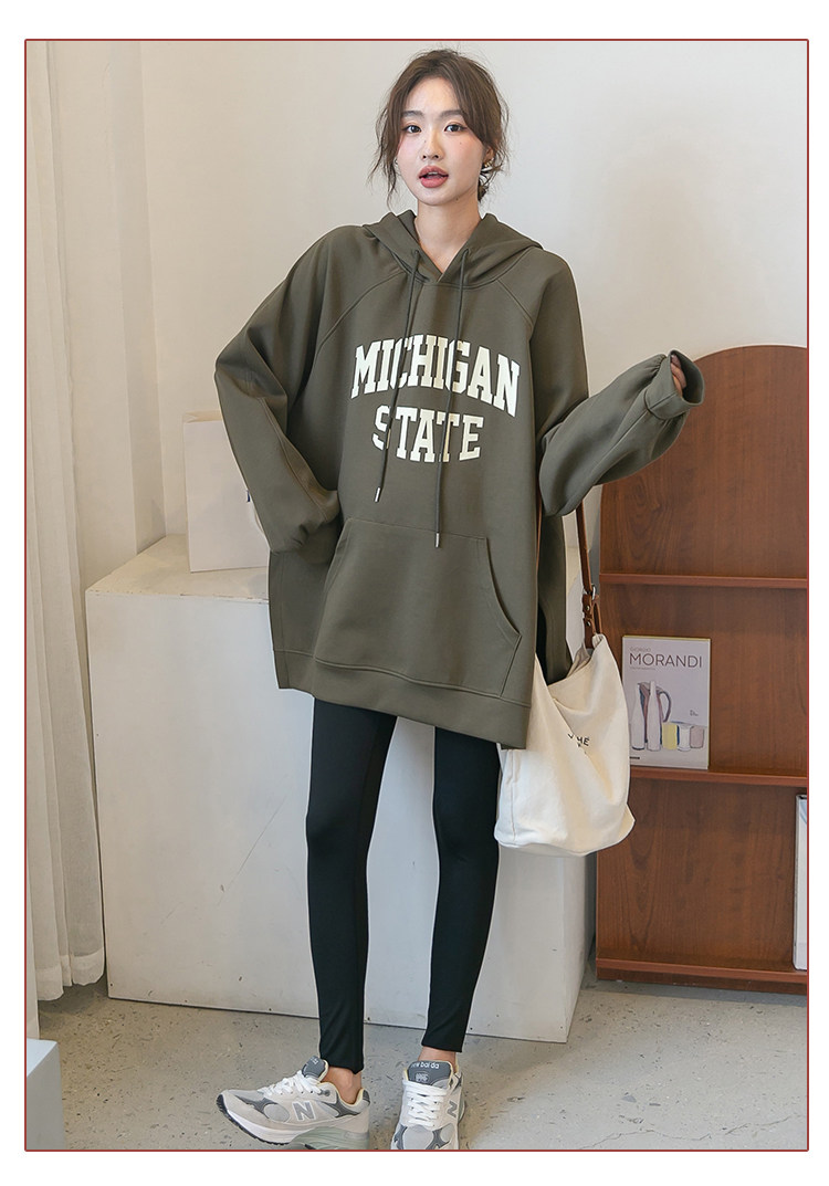 Осенняя демисезонная длинная утепленная толстовка с капюшоном для беременных для отдыха, средней длины, оверсайз