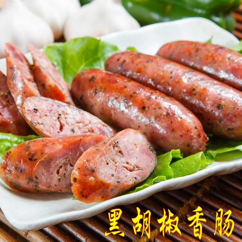 Колбаса черного перца Аутентичный Тайваньский вкус Чистое мясо делает вулканический камень на гриле кишечные хот -доги слегка пряные 500 грамм/10 кусочков