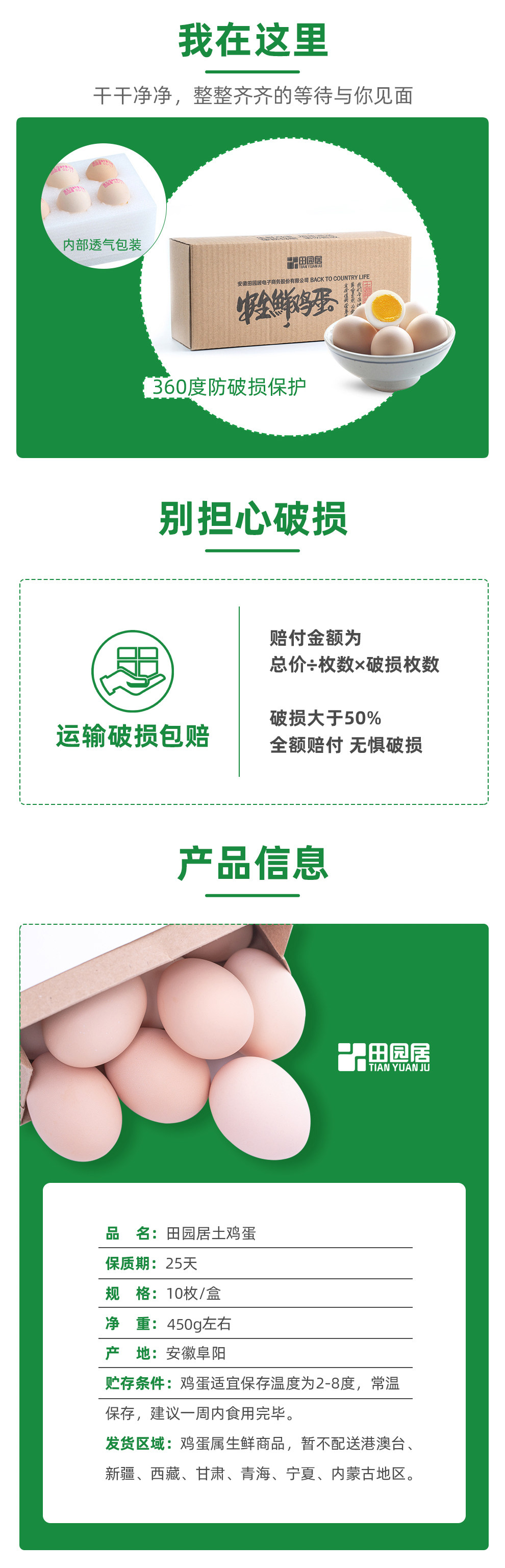 田园居 AAA -Level Egg Fresh Valley Egg 45G*10 Зерно
