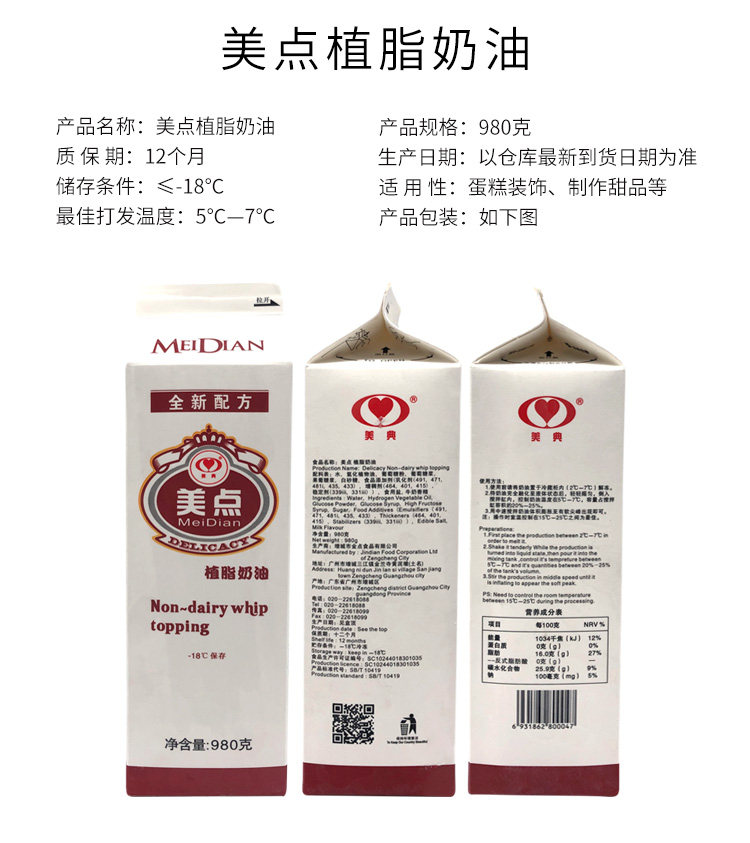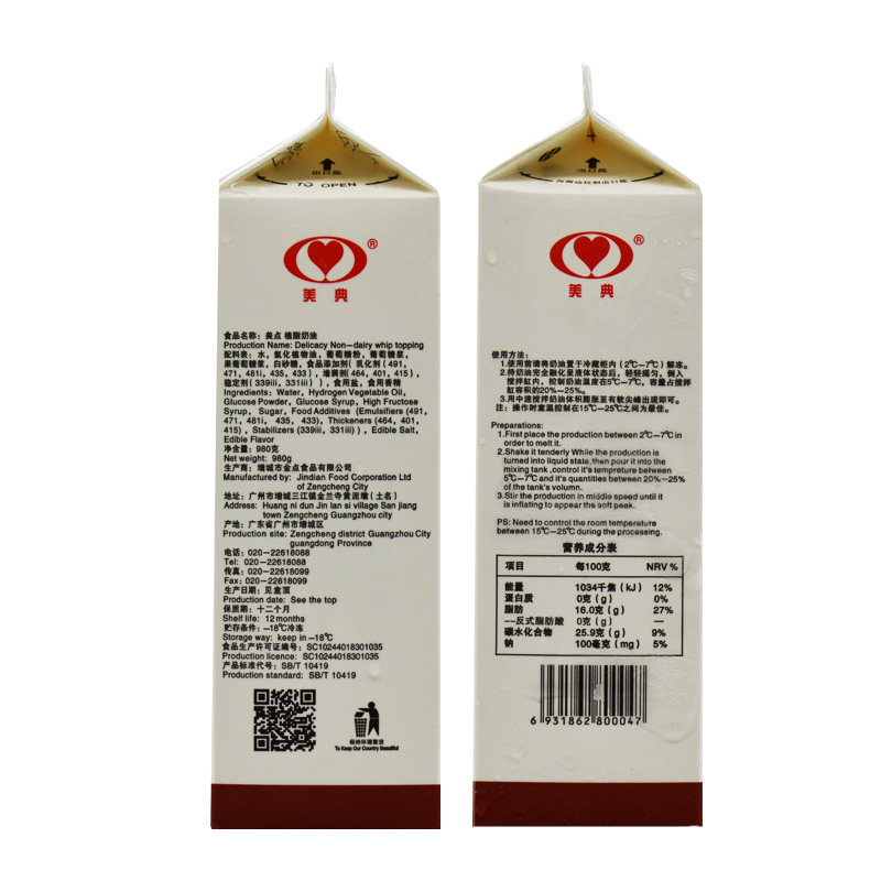 Красивый Dianpi/Fresh Cream/Cream Cream/Cake Cormer Cream 980g