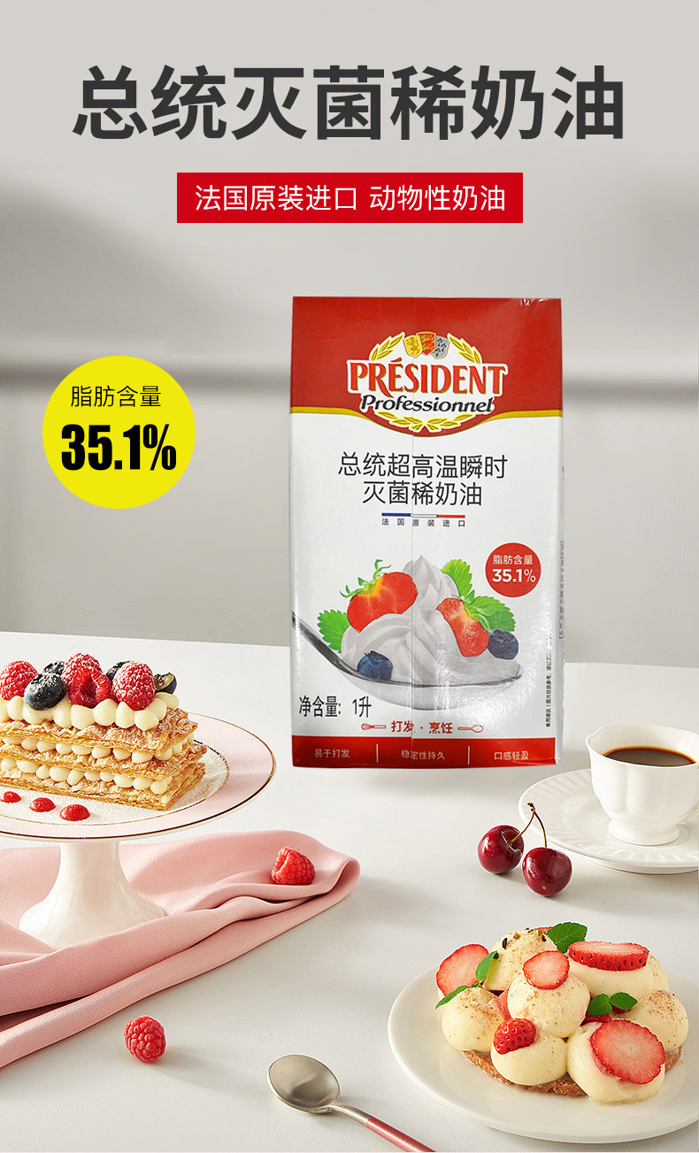 总统 Свежие сливки 1 л.*6 коробок Франция во Франции в французском кремах декоративные кремы для животных