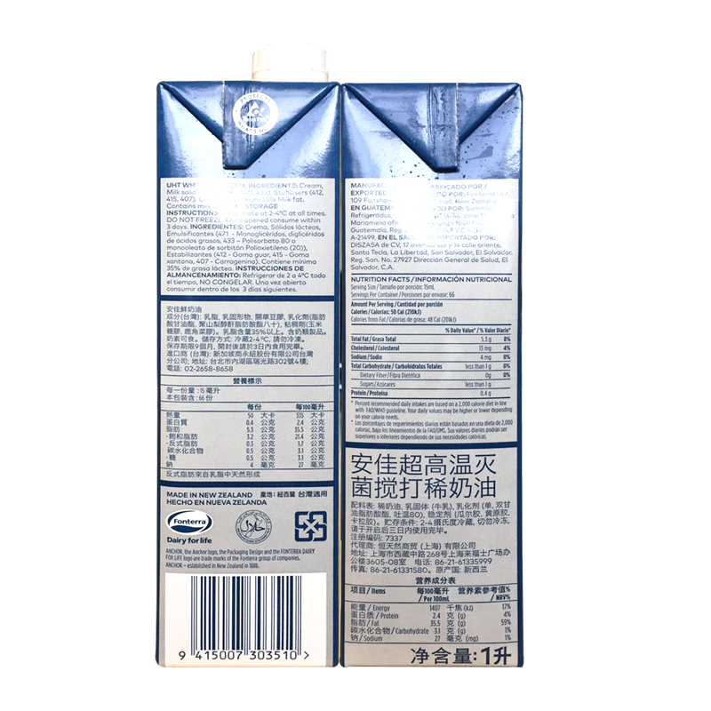 Anjia Fresh Cream 1L*12 бутылок животного -ориентированные на декоративные кремовые выпечки сырья бесплатная доставка