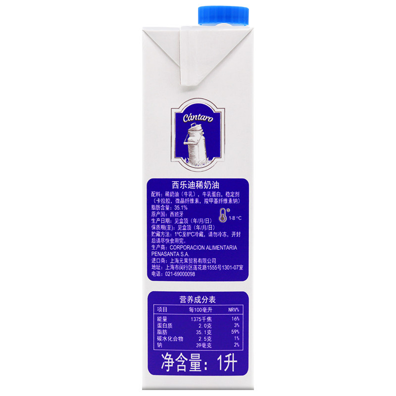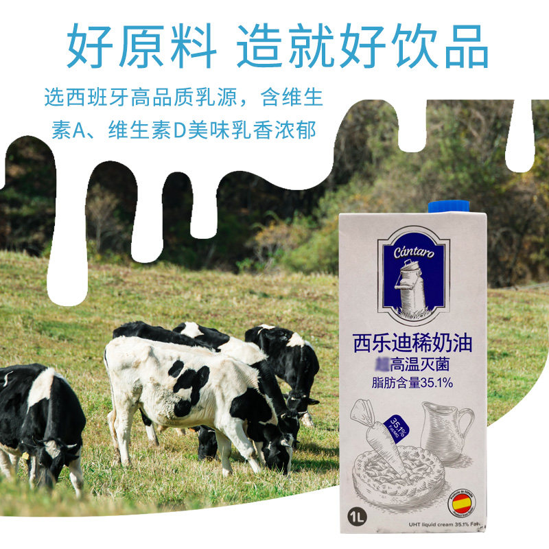 西乐迪 Световой кремовый испанский животный свежий кремовый кремовый пирог и легко взбить 1L*6 бутылок, бесплатная доставка для цельного багажа