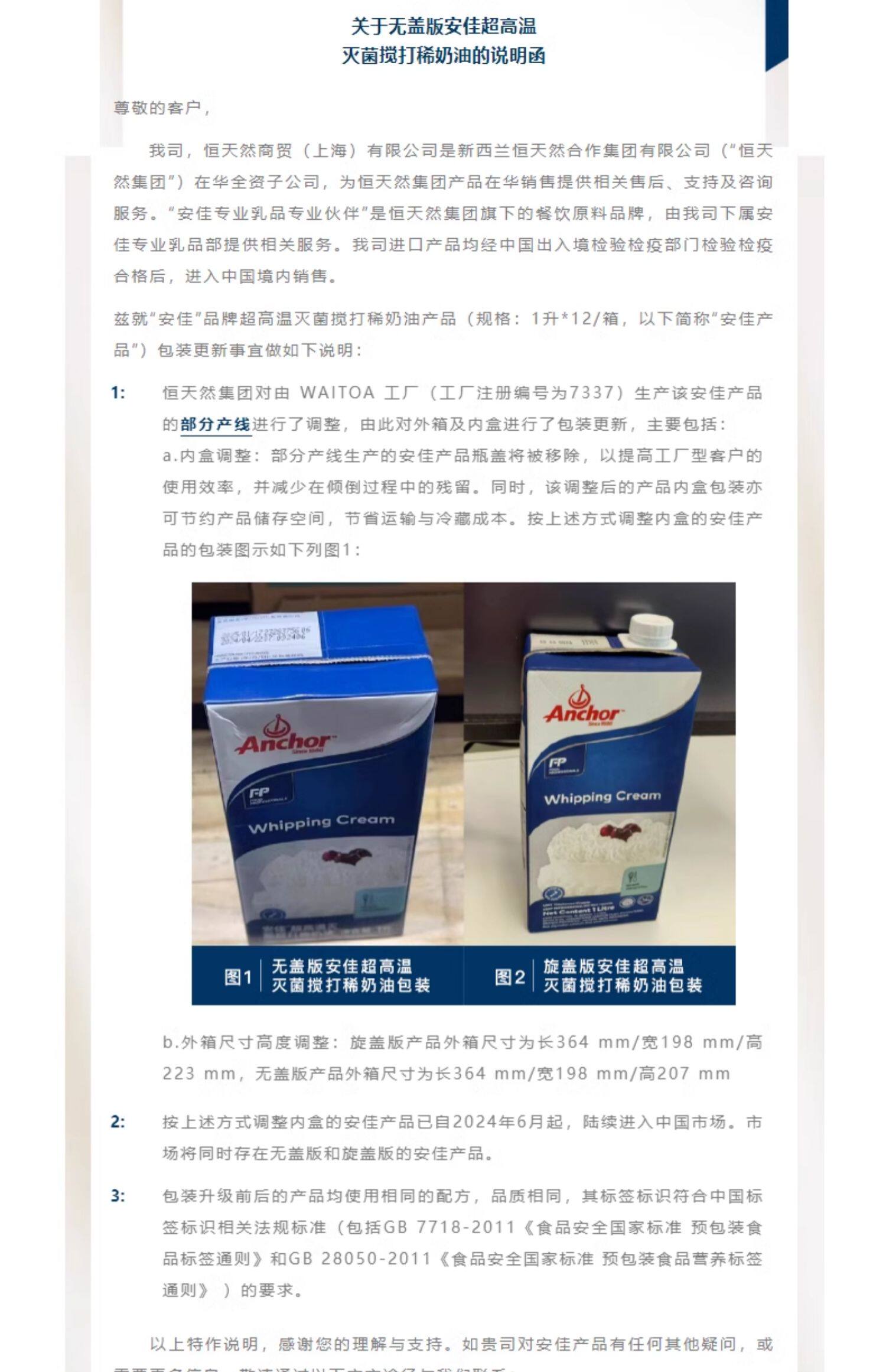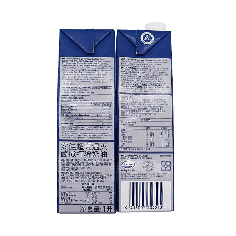 Легкие кремы Anjia 1L12 коробка, импортируемая из новозеландского кремового кремового пирога и ингредиентов для выпечки