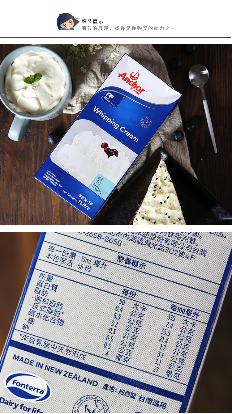 Anjia Fresh Cream 1L Новая Зеландия Импортируемый животный кремовый пирог пирог декоративный выпечка сырья Бесплатная доставка