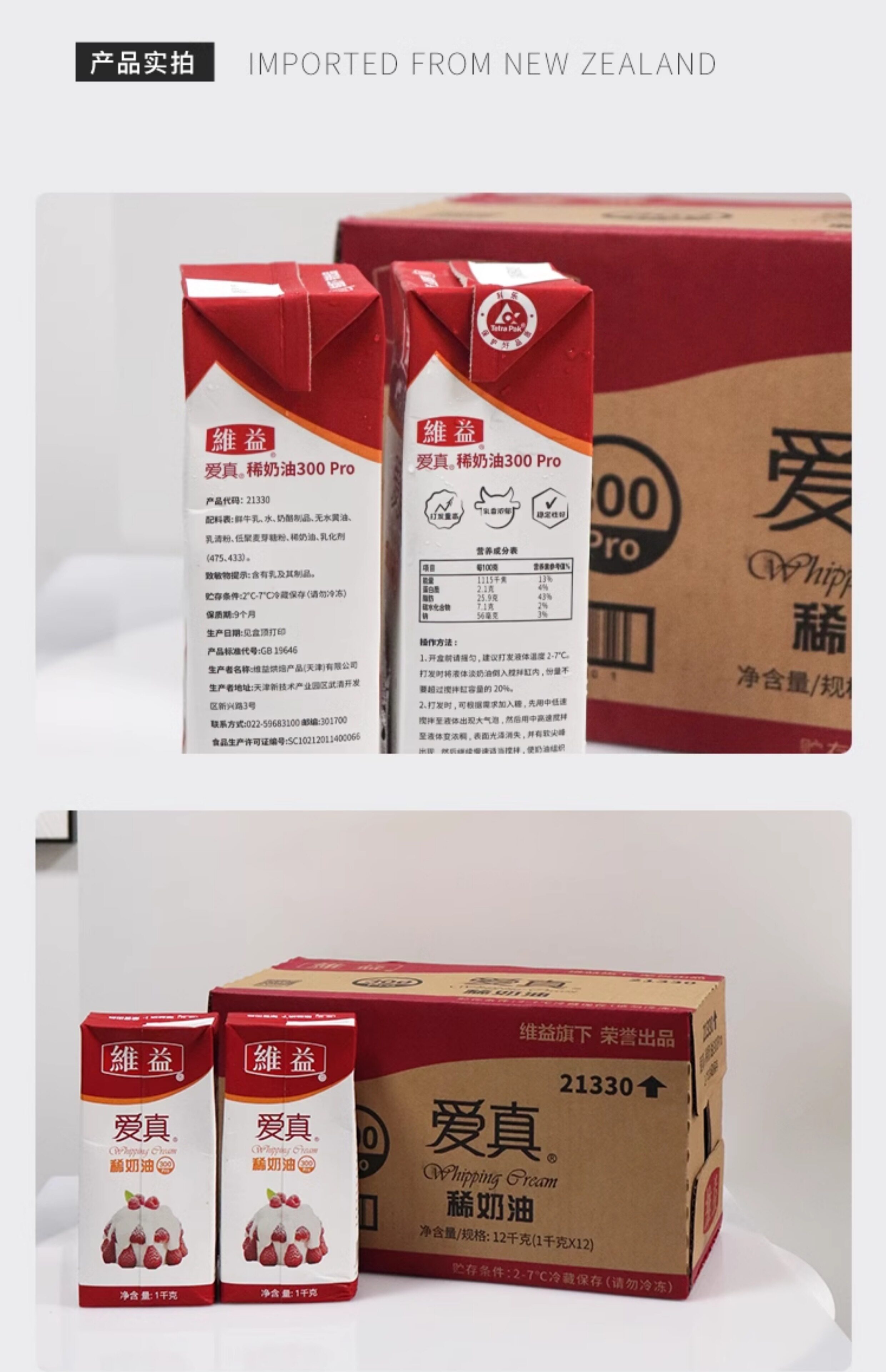 维益爱真 300pro Light Cream 1L*12 Живоболочные кремовые пирожные и выпечка специальные ингредиенты целая коробка