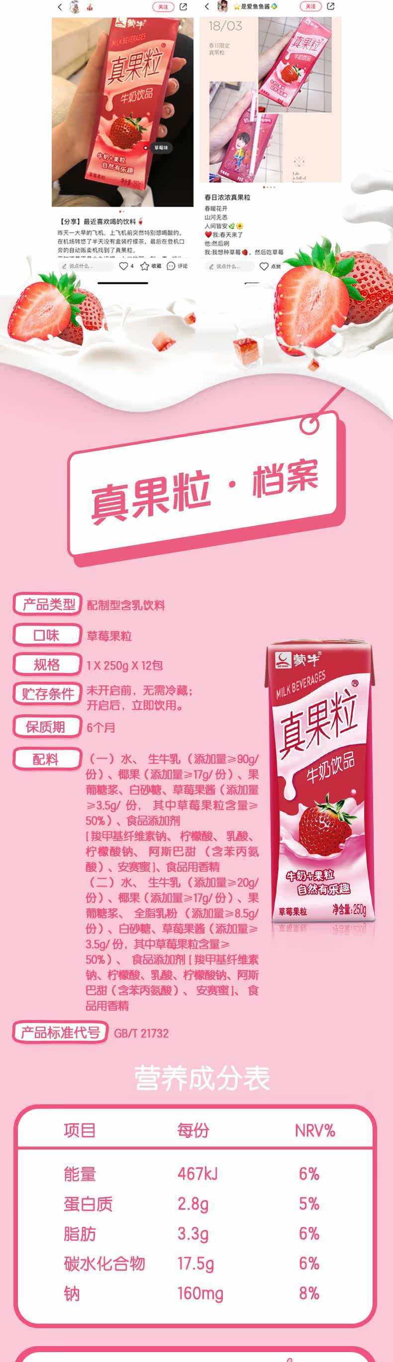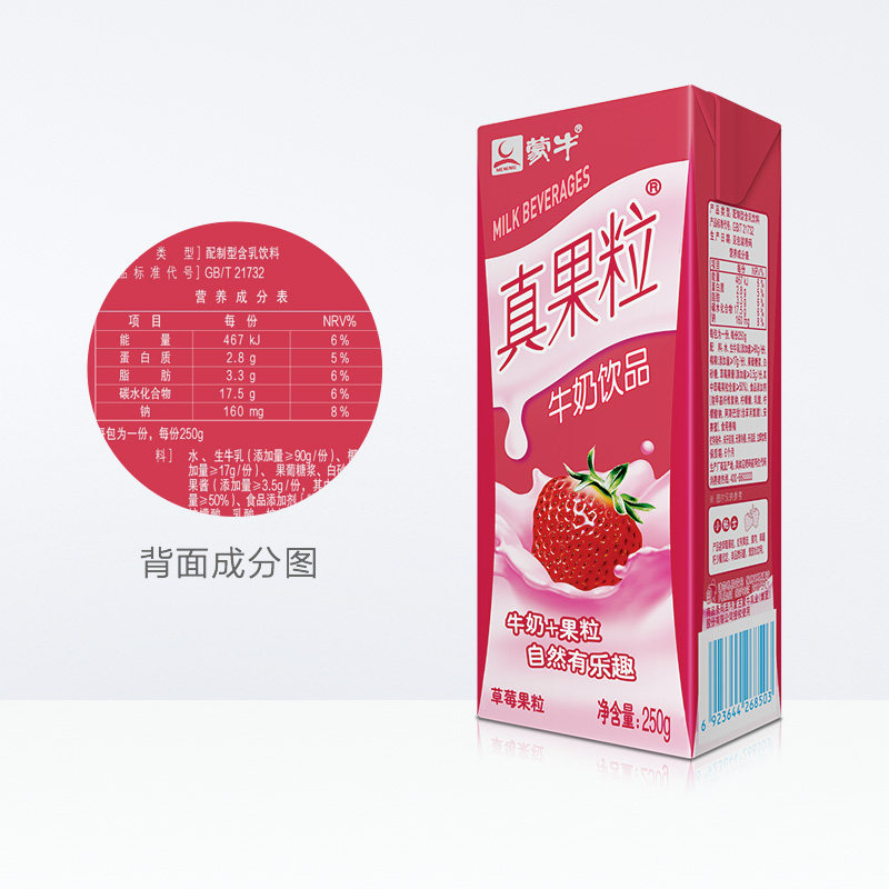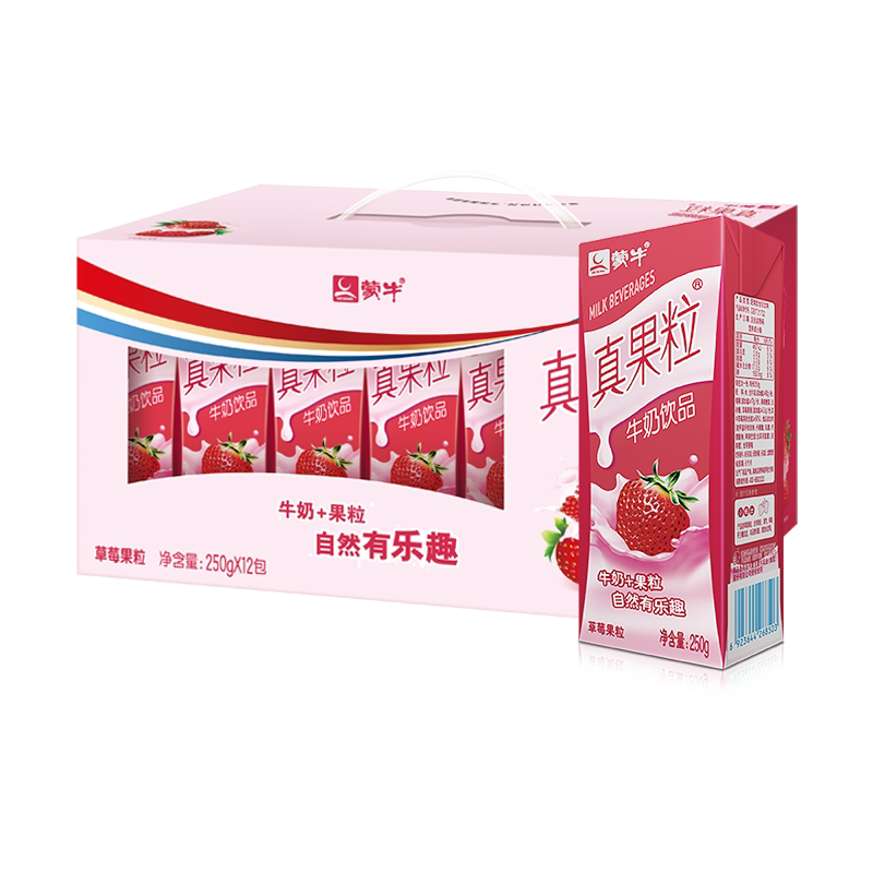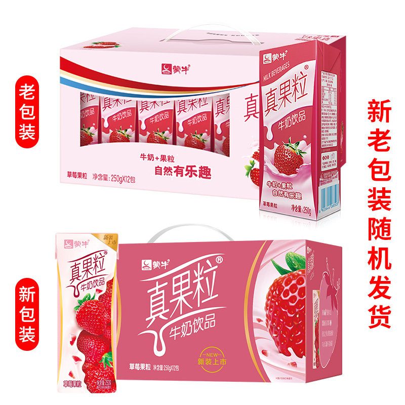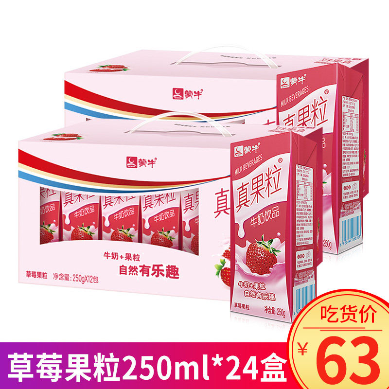 蒙牛 Истинное фруктовое зерно клубничное зерно 250 мл*24 коробки с двумя коробками с клубничным вкусом молочные напитки напитки питание для завтрака молоко