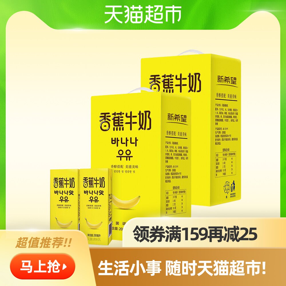 New Hope Milk Breakfast Banana Milk Sweet Sweet Sweet Sweet больше стоимости -Эффективная цельная коробка 200 мл*12*2 коробок