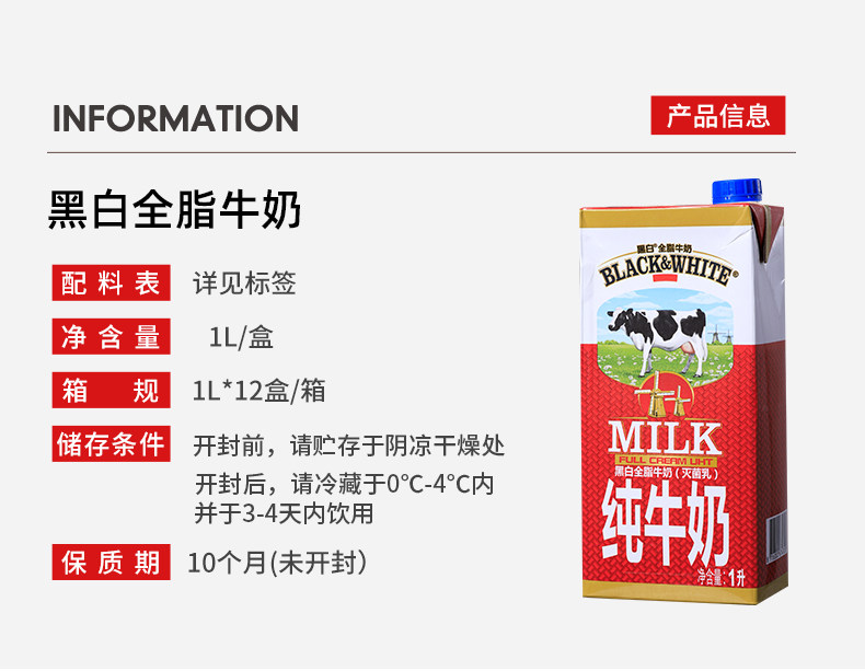 Фишбанский черно -белый целое молоко 1 л*12 целая коробка оригинальной импортированной чистого молока Catering Coffee Milk Tea Shop Shop
