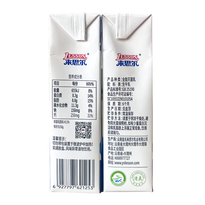 Yunnan Laiser Pure Milk 256GX24 Boxing Box Box Boxing Студенческий завтрак, полный чистого молока Dali Specialty Fresh