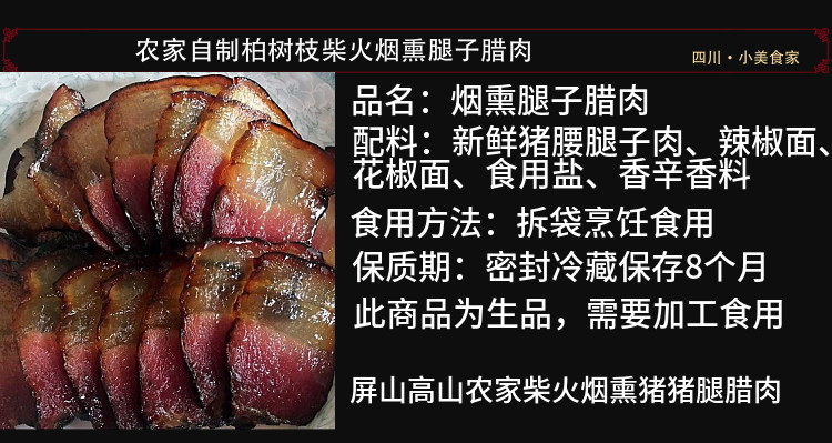 Бесплатная доставка Sichuan Yibin Pingshan Specialty Farm Self -Made Smilk Smilk Sirebire Smoking Smoke Smoke Blore Pine свинина 500G