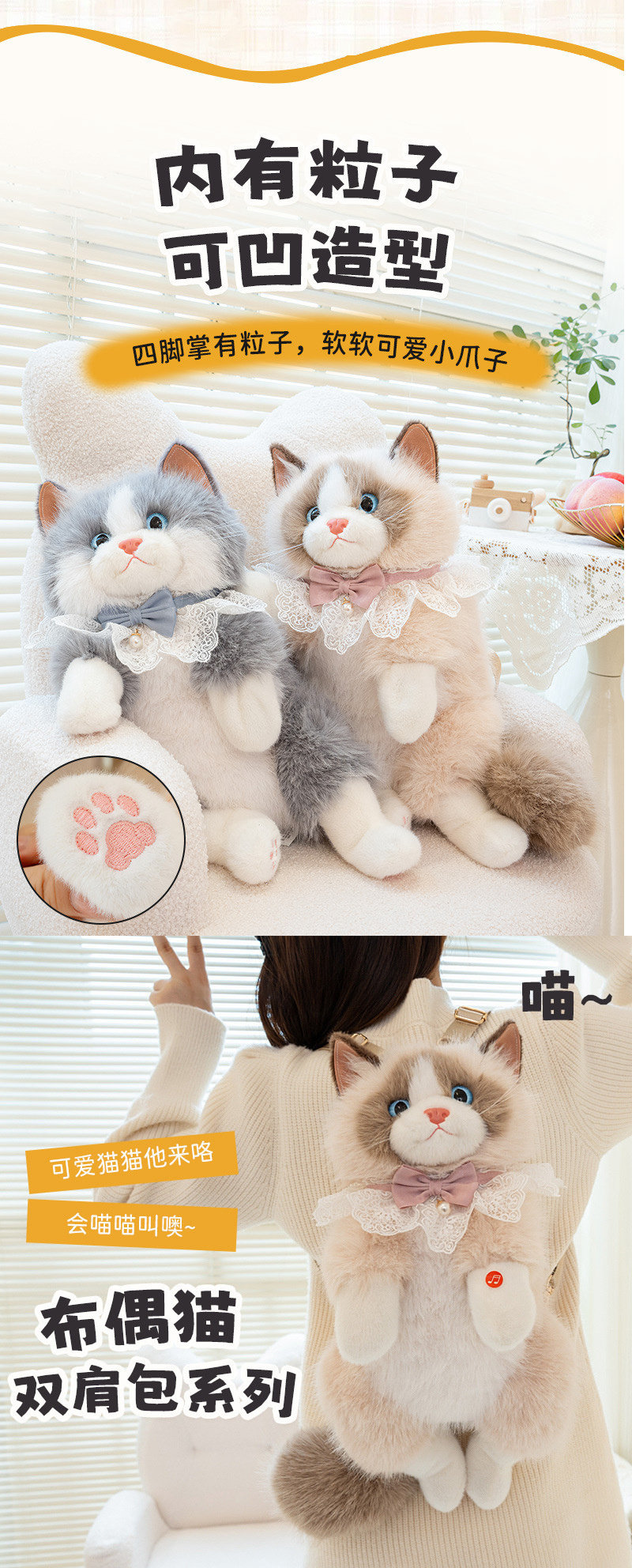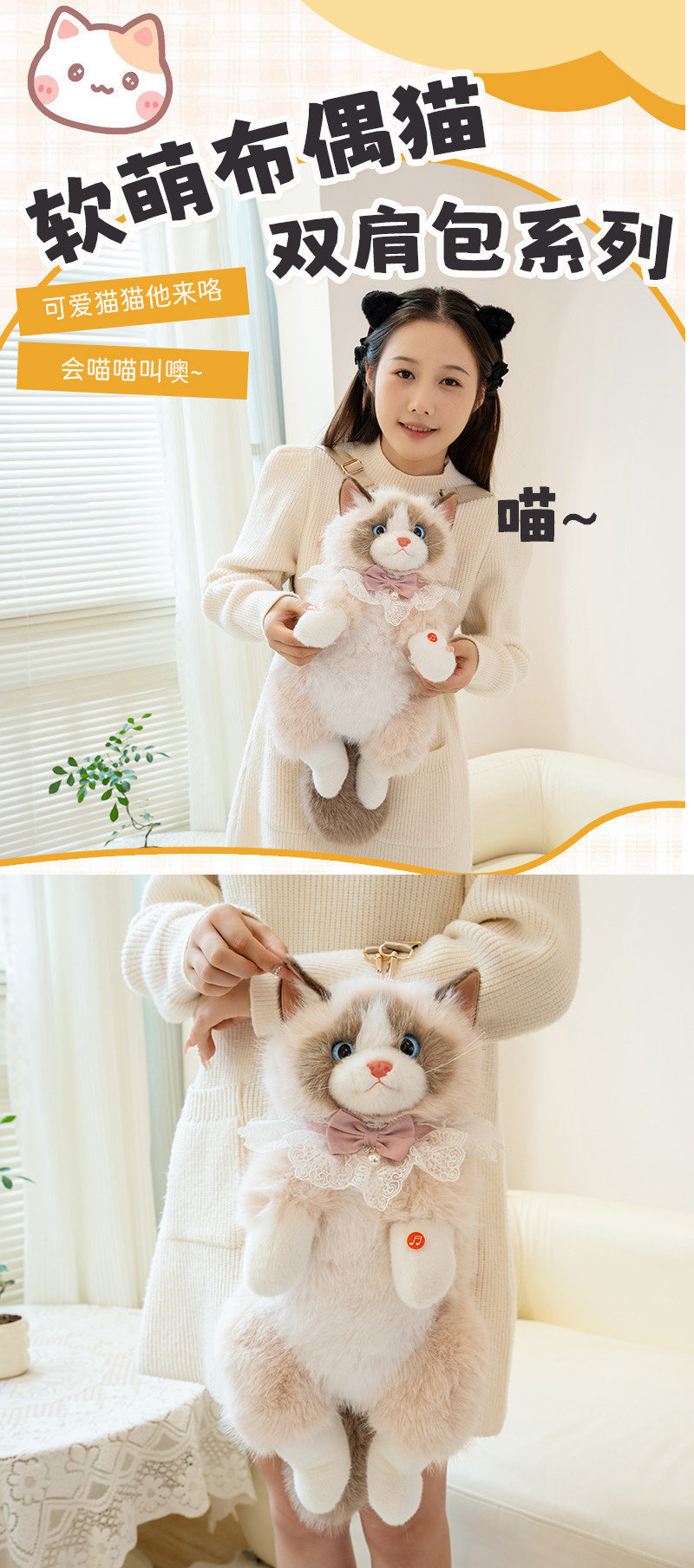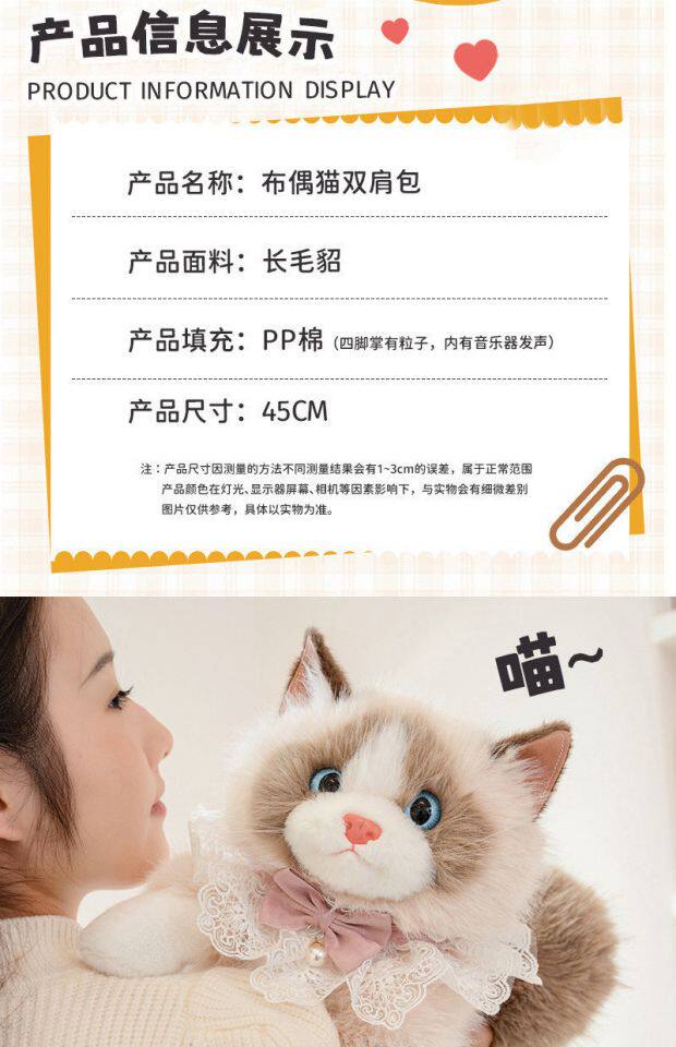 Реалистичный рюкзак, сумка для мальчиков и девочек, плюшевая кукла, новая коллекция, кот