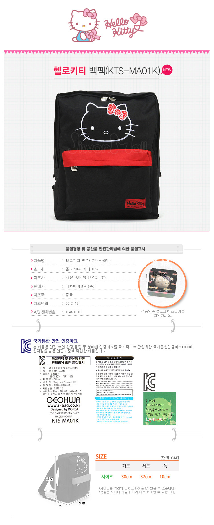 Hello kitty, оригинальный детский школьный рюкзак, Южная Корея