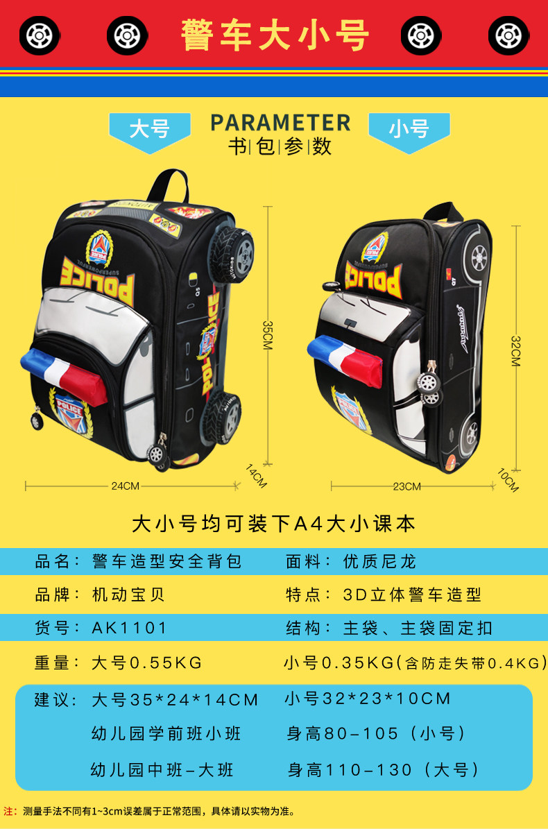 Милый школьный рюкзак для детского сада для мальчиков, детский пенал, полицейская машина, в корейском стиле