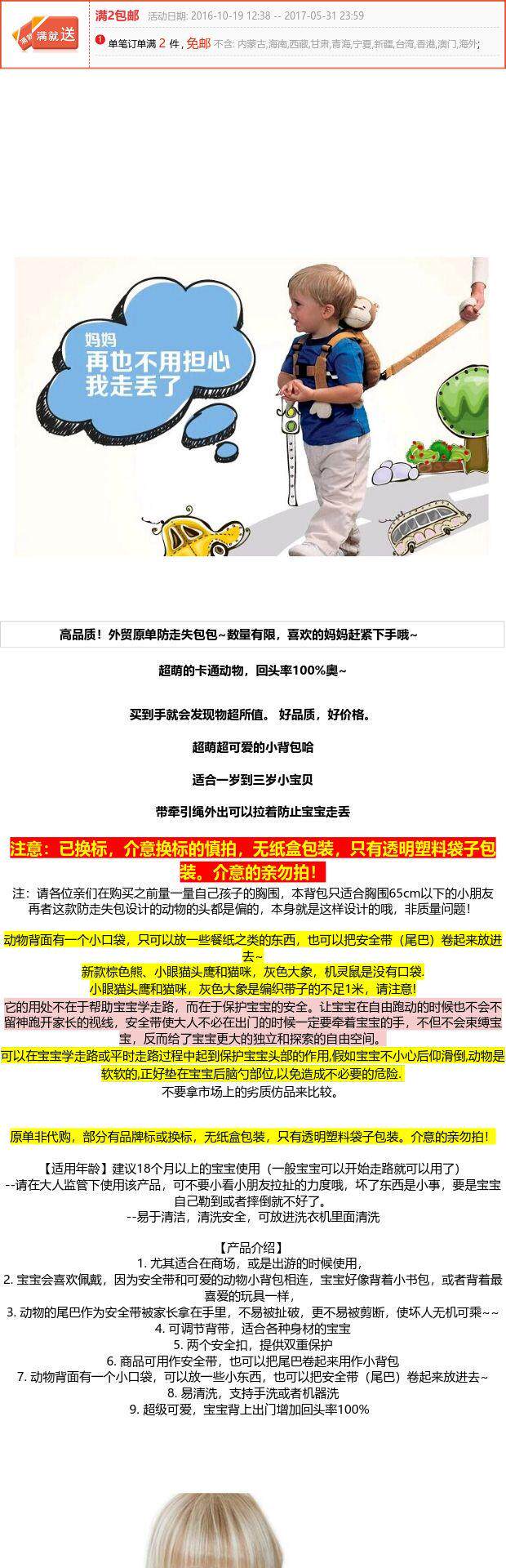 Защитный мультяшный детский школьный рюкзак с поводком с животными, анти-потеряшка