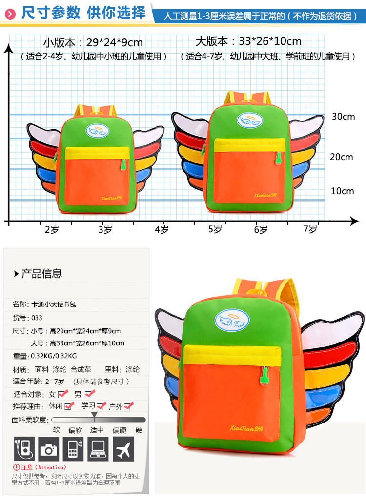 Симпатичный рюкзак Angel Wings Детский рюкзак, сделанный из высококачественной нейлоновой ткани, качество отличное