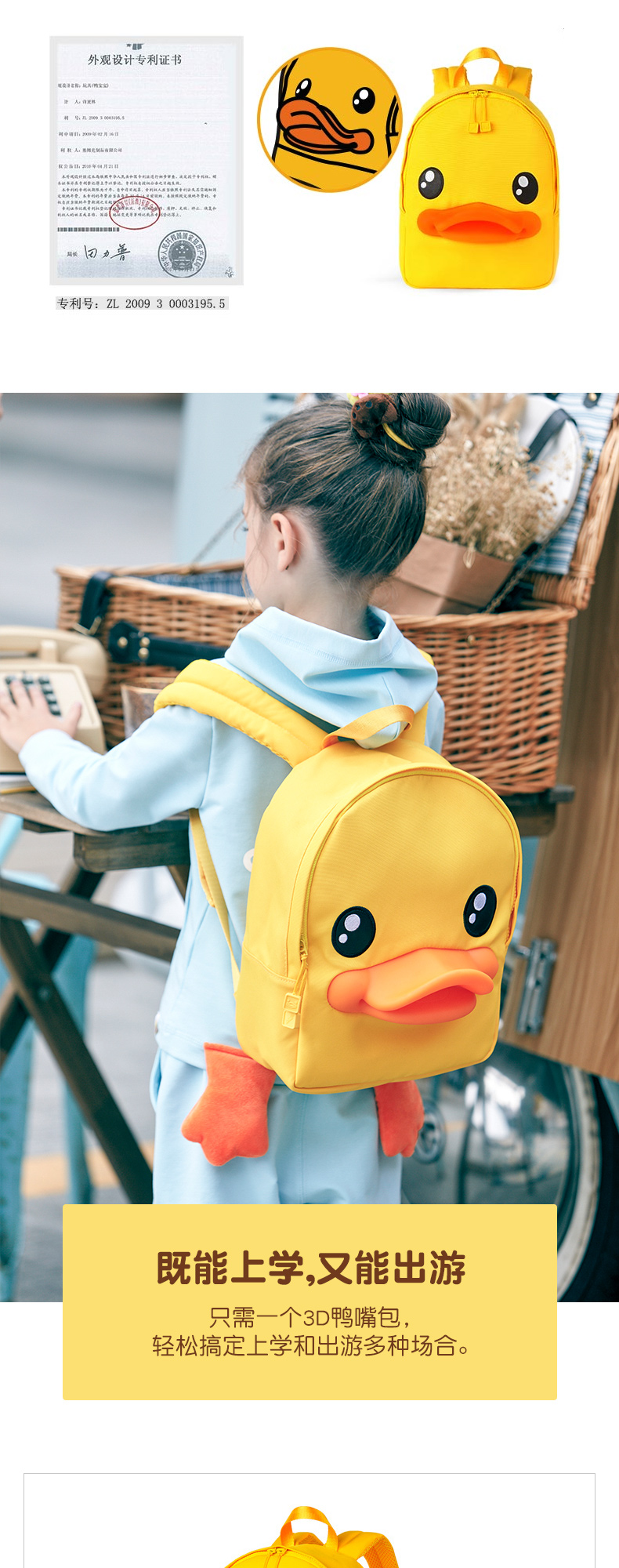 B.Duck, мультяшный ранец, рюкзак для взрослых, 3D, ткань оксфорд