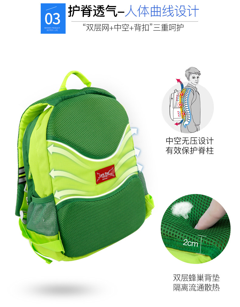 Larkpad Детский школьный рюкзак со сниженной нагрузкой, защита позвоночника
