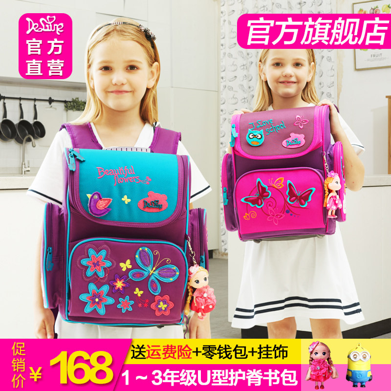 Детский милый школьный рюкзак со сниженной нагрузкой, 1-3 года, защита позвоночника, с вышивкой