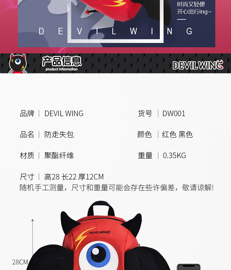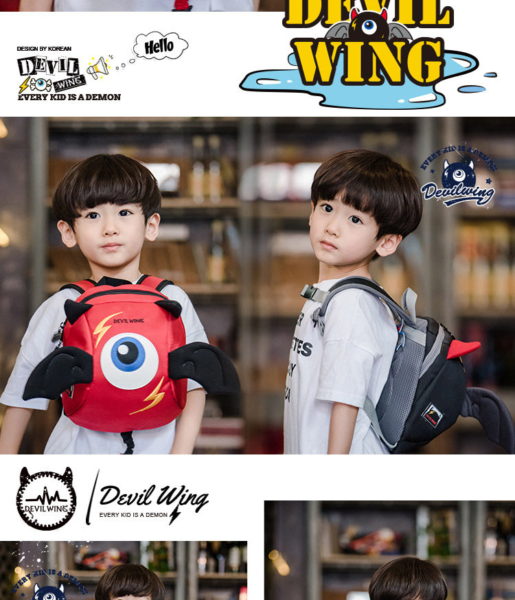 Devilwing, защитный детский ранец подходит для мужчин и женщин, школьный рюкзак, защита от утери, 2-3-4-5 лет