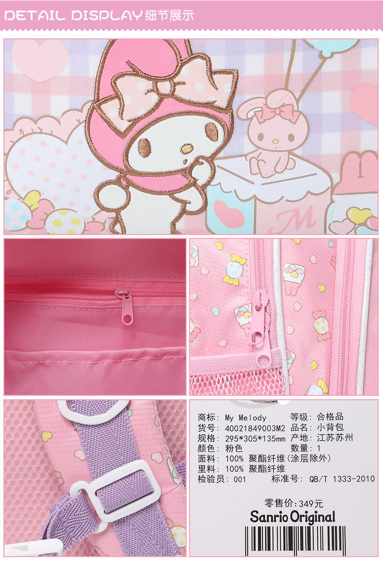 Sanrio Sanrio Mymelody Meloti Детская сумка Pink Girl Heart 3-6-летний рюкзак детского сада