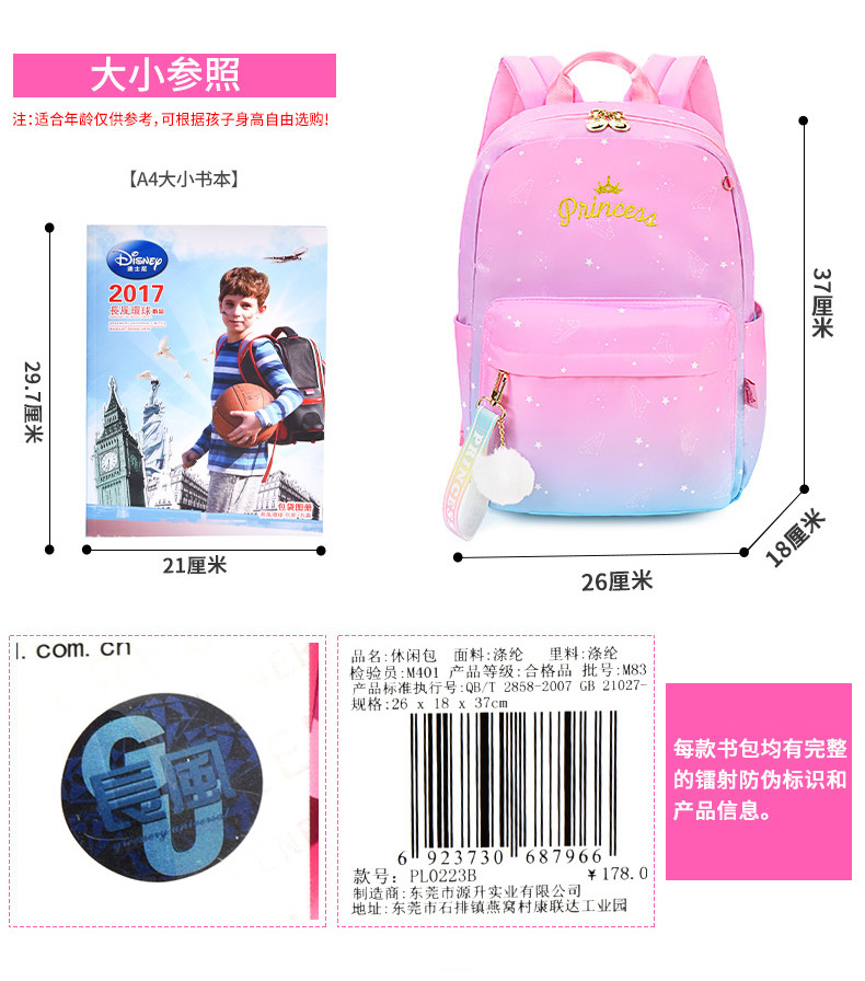 Дисней, детский школьный рюкзак для принцессы для отдыха, 1-3 года, в корейском стиле