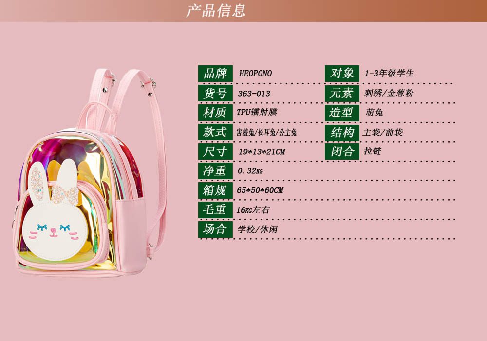 Прозрачный школьный рюкзак, кролик, маленькая детская сумка