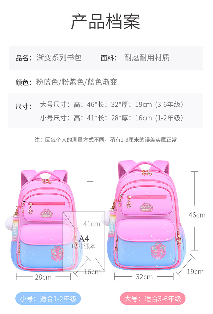 Детский сверхлегкий водонепроницаемый школьный рюкзак для принцессы со сниженной нагрузкой, надевается на плечо